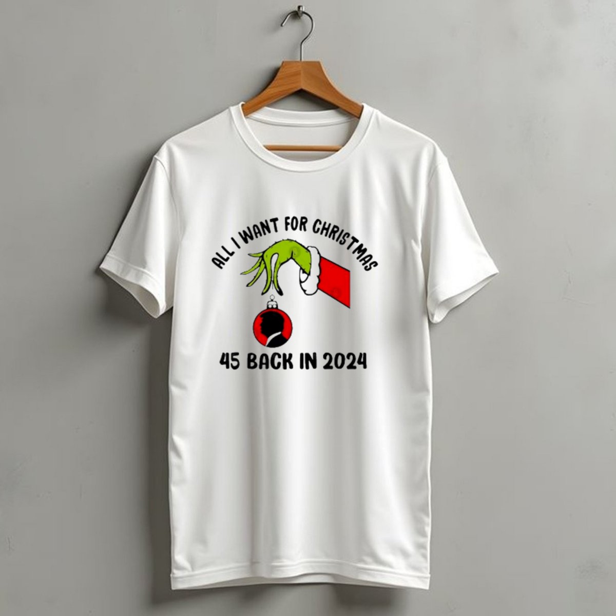 Celebrate the holiday spirit with our “All I Want For Christmas Grinch 45 Back In” T-shirt! Perfect for fans of the beloved Grinch character, this shirt is a delightful addition to your festive wardrobe. Whether you’re attending a themed event, gathering with friends and family, or just enjoying the cozy vibes of the season, this fan-made design, printed in the USA, is sure to bring a smile to everyone’s face. Its classic fit and breathable material make it an ideal choice for all-season casual wear.