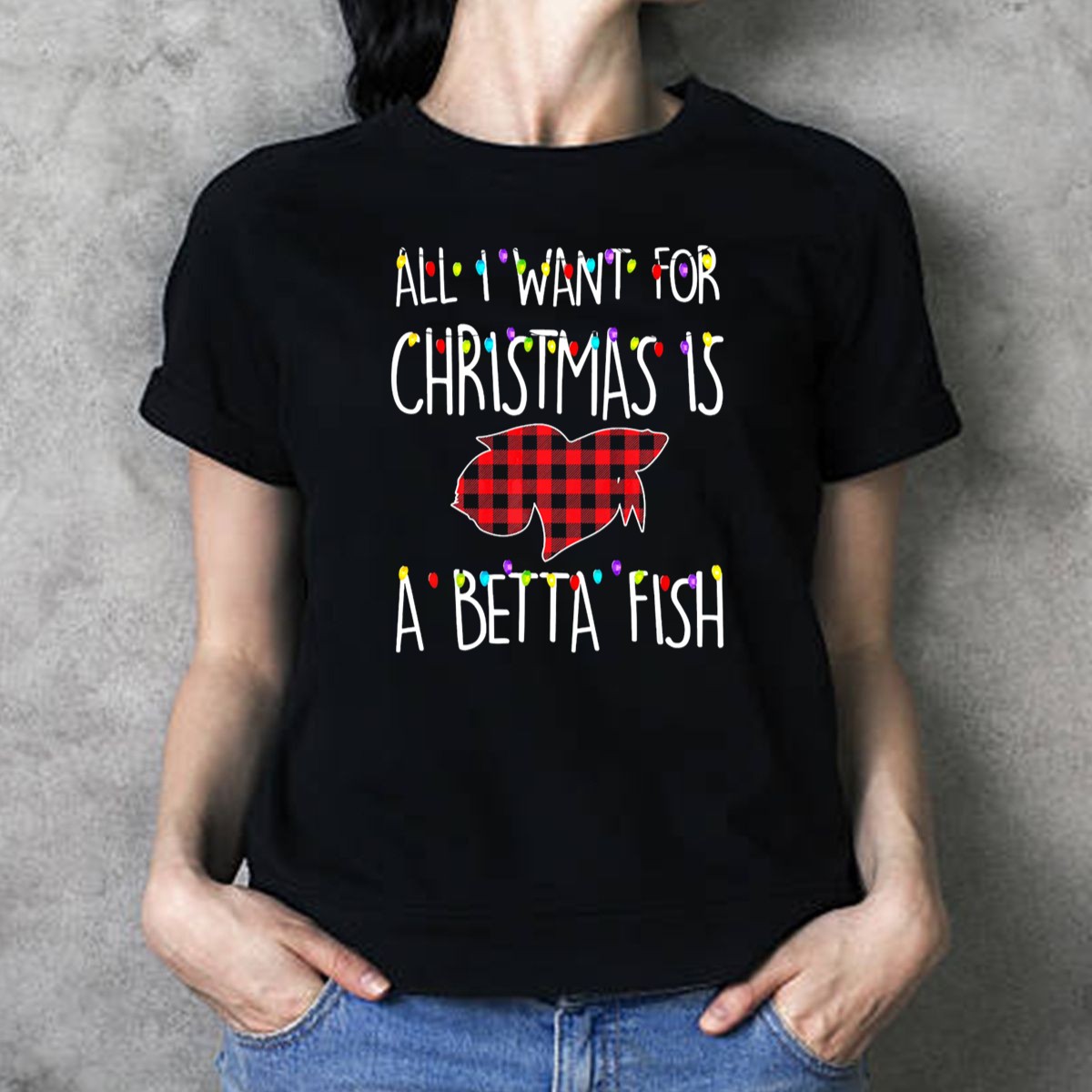 All I Want For Christmas Is A Betta Fish Plaid Lights T Shirt