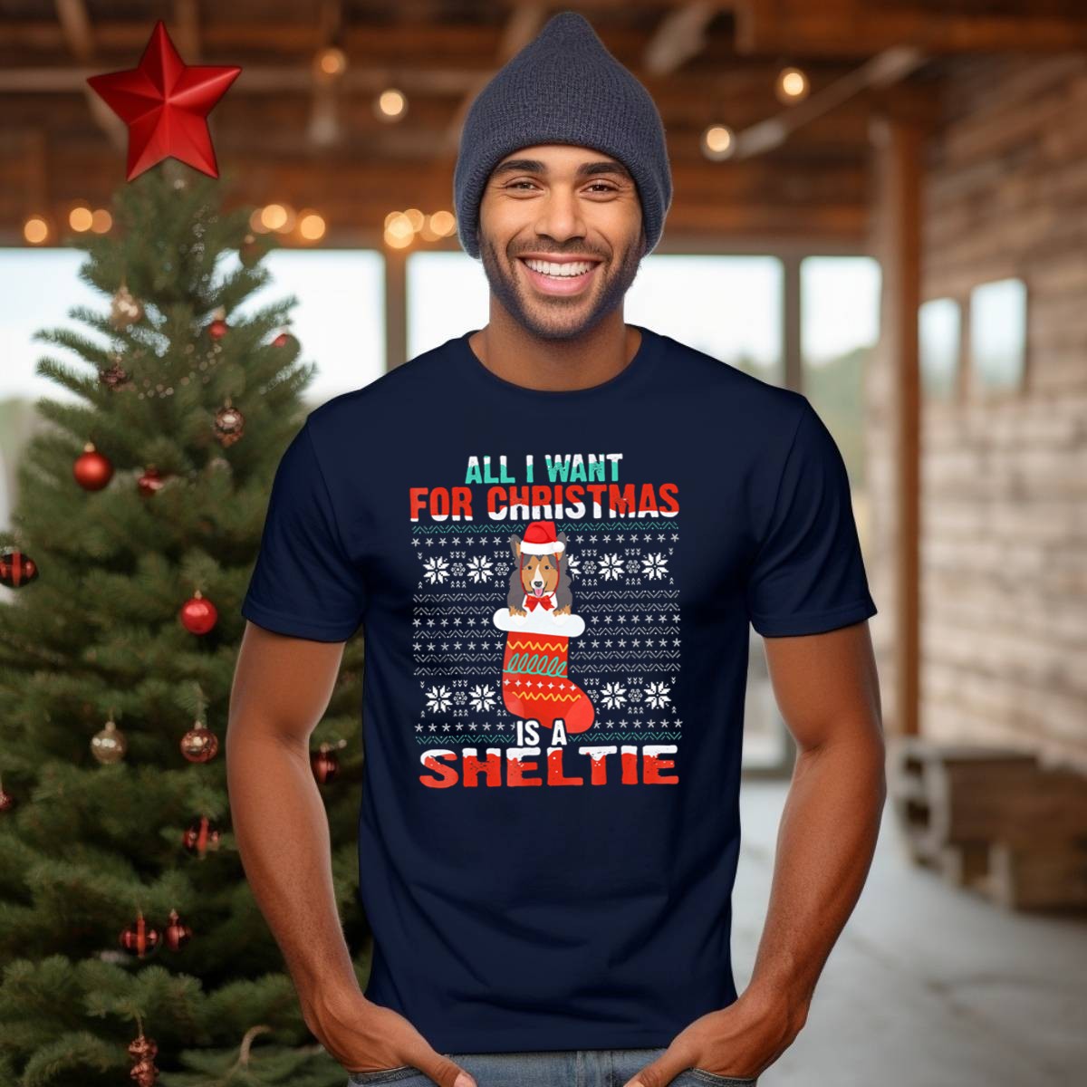 Be the first to review “All I Want For Christmas Is A Sheltie In Festive Stocking With Ugly T Shirt”