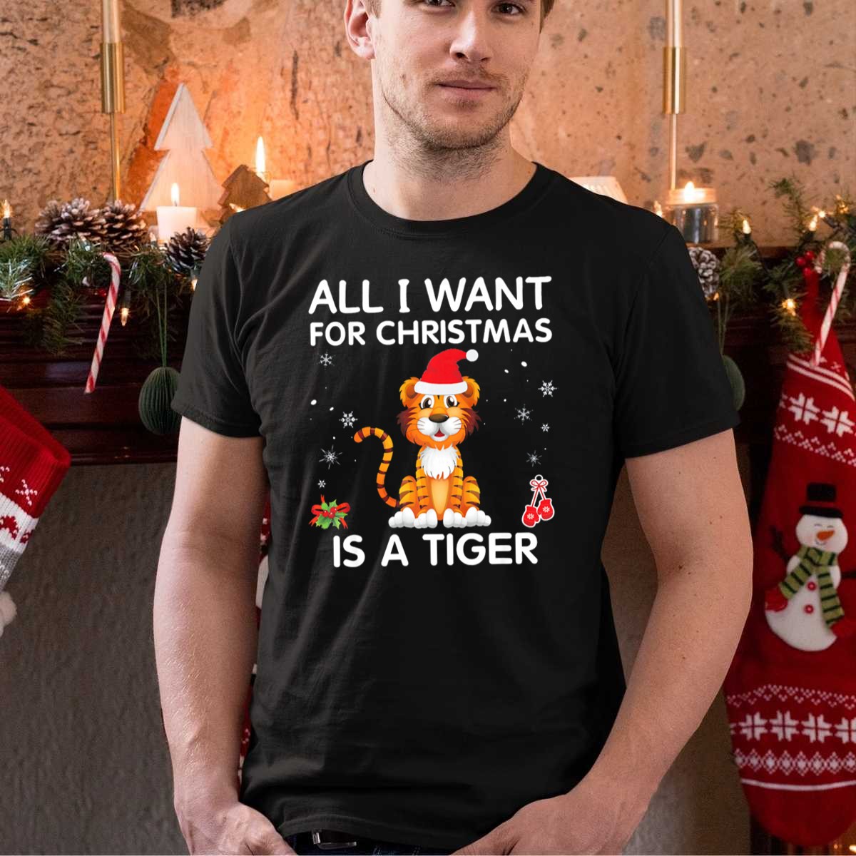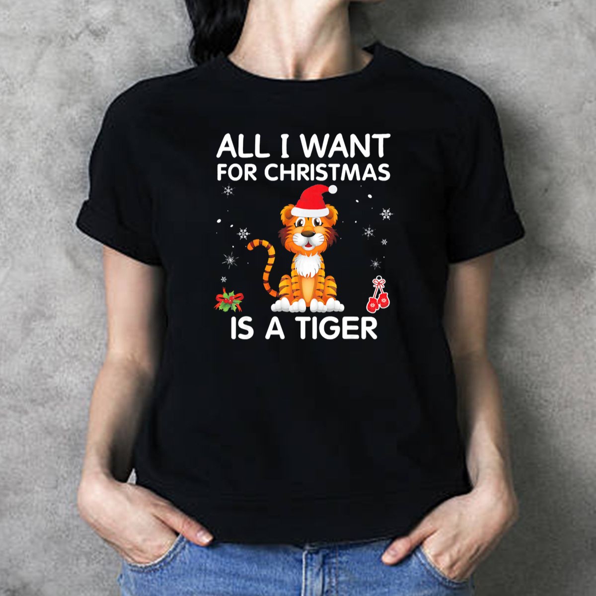 Be the first to review “All I Want For Christmas Is A Tiger In Santa Hat Snowflakes Berries T Shirt”