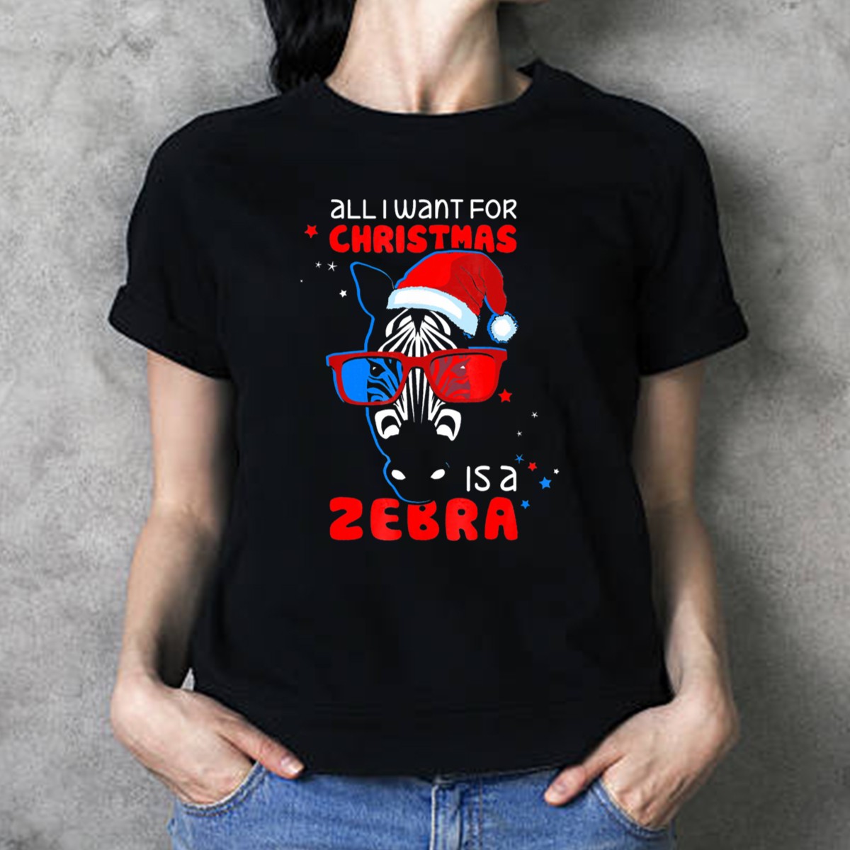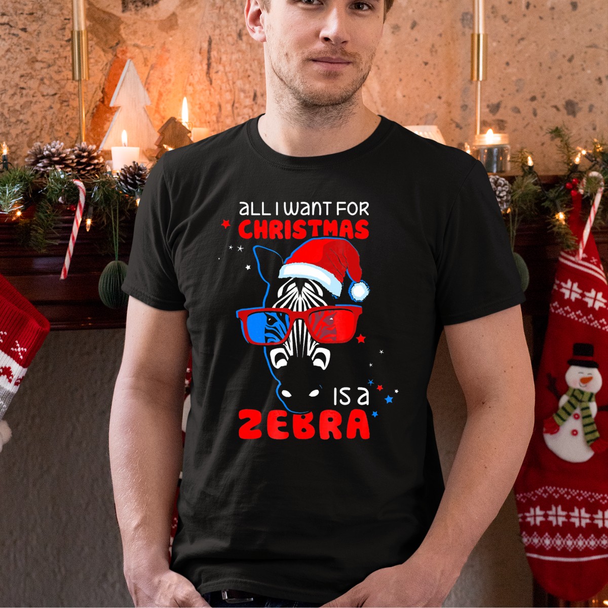 Be the first to review “All I Want For Christmas Is A Zebra Wearing Santa Hat And 3D Glasses T-Shirt”