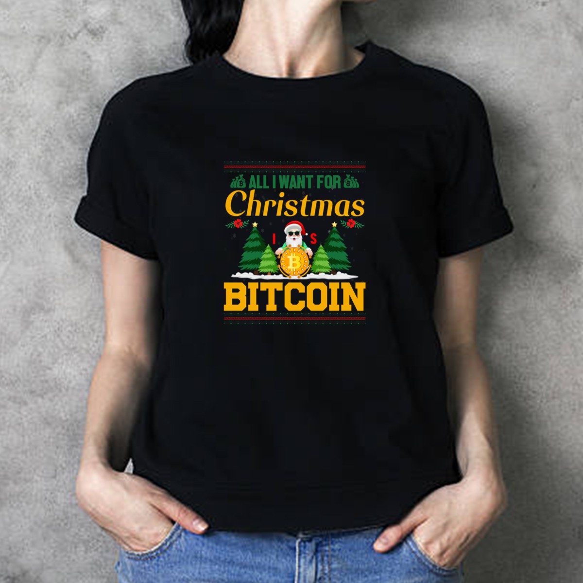 Get into the festive spirit with our “All I Want For Christmas Is Bitcoin” T-shirt featuring a whimsical design of Santa holding Bitcoin trees! Perfect for cryptocurrency enthusiasts and holiday lovers alike, this shirt is stylish enough for casual gatherings, themed events, or just lounging around during the holiday season. Made with a fan-made design that’s printed in the USA, it’s a unique way to show off your love for Bitcoin while celebrating the most wonderful time of the year.