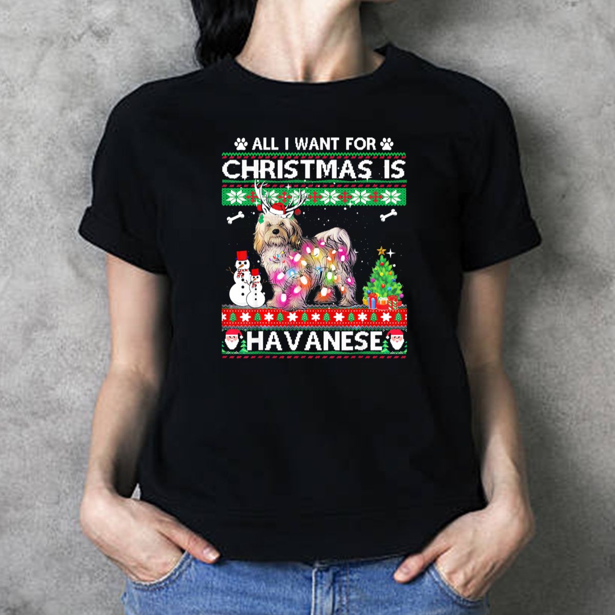 Celebrate the holiday season in style with our “All I Want For Christmas Is Havanese Reindeer Lights Snowman Tree” T-Shirt! Perfect for dog lovers and festive spirits alike, this fan-made design showcases your love for Havanese dogs while embracing the cheerful vibe of Christmas. Whether you’re attending a themed event, enjoying casual gatherings, or just spreading holiday cheer, this shirt is a delightful addition to your wardrobe that brings joy to every occasion.