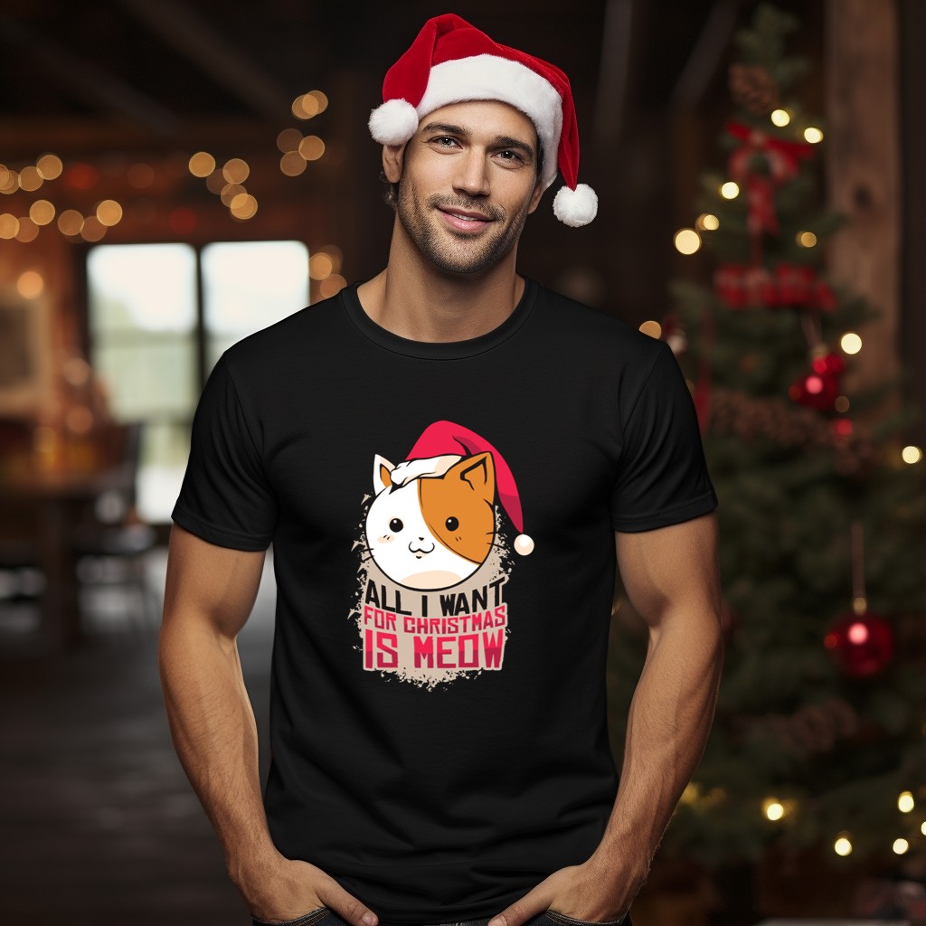 Celebrate the festive season with our “All I Want For Christmas Is Meow” Cat Santa Hat T-Shirt! Perfect for cat lovers and holiday enthusiasts alike, this playful tee combines a charming design with a classic fit, making it an ideal choice for casual gatherings, themed events, or simply lounging at home. Proudly printed in the USA, this fun shirt is sure to bring joy and smiles wherever you go!
