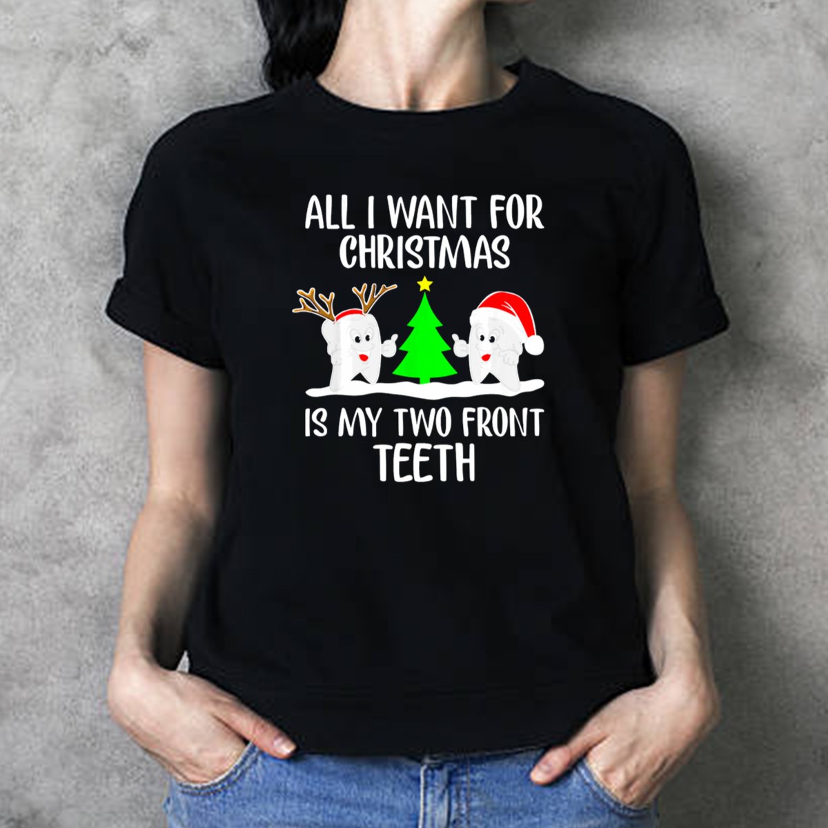 Be the first to review “All I Want For Christmas Is My Two Front Teeth Reindeer Santa Christmas Tree T-Shirt”