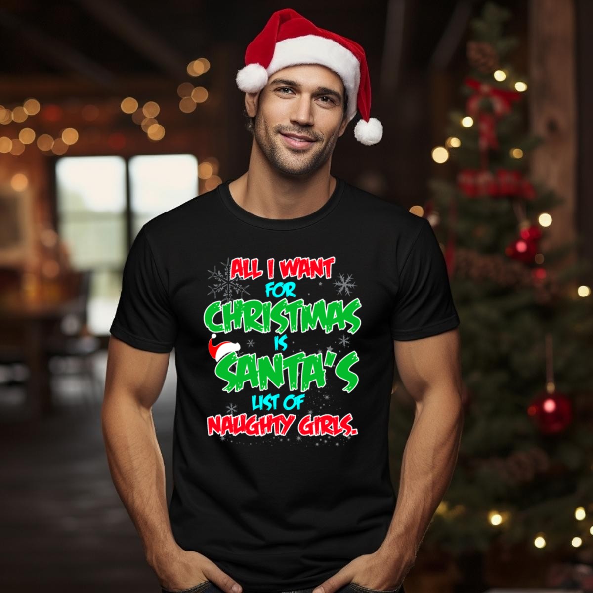 Get ready to spread some holiday cheer with our “All I Want For Christmas Is Santa’s List Of Naughty Girls” T-shirt! Perfect for men who love to celebrate the festive season with a touch of humor, this shirt is ideal for themed parties, casual gatherings, or just lounging around during the holidays. Made with a fan-made design printed right here in the USA, this T-shirt is not just a fashion statement, but a fun way to show off your holiday spirit!