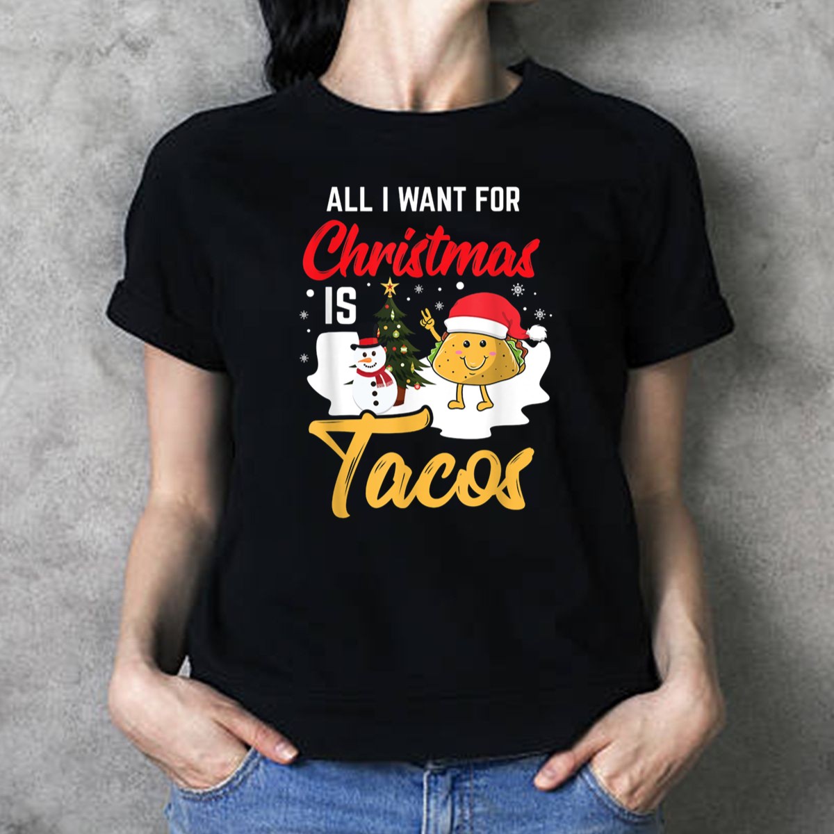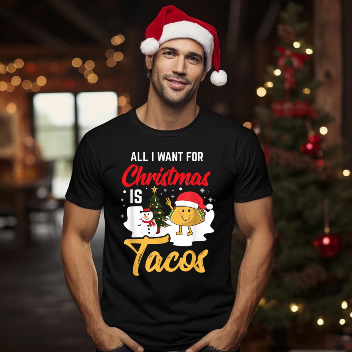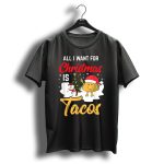 Get ready to spread some holiday cheer with our “All I Want For Christmas Is Tacos” T-shirt, featuring a whimsical snowman wearing a festive Santa hat! This shirt is perfect for taco lovers and those who enjoy a good laugh during the holiday season. Ideal for casual wear, themed events, or simply showing off your unique sense of humor, this fan-made design is printed in the USA, making it a special addition to your festive wardrobe.