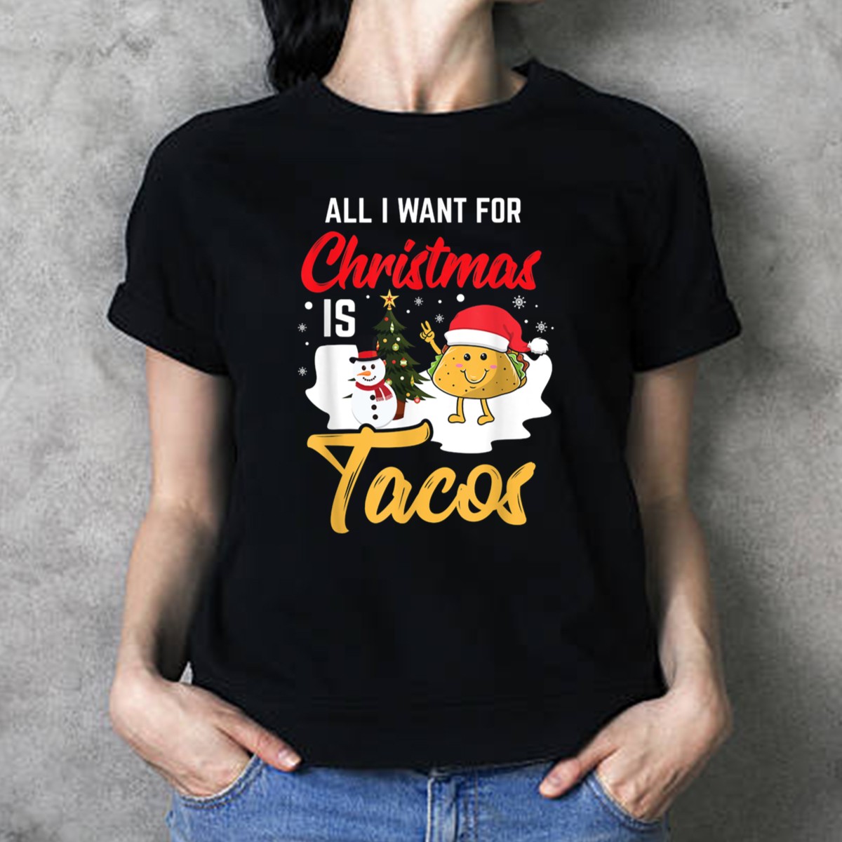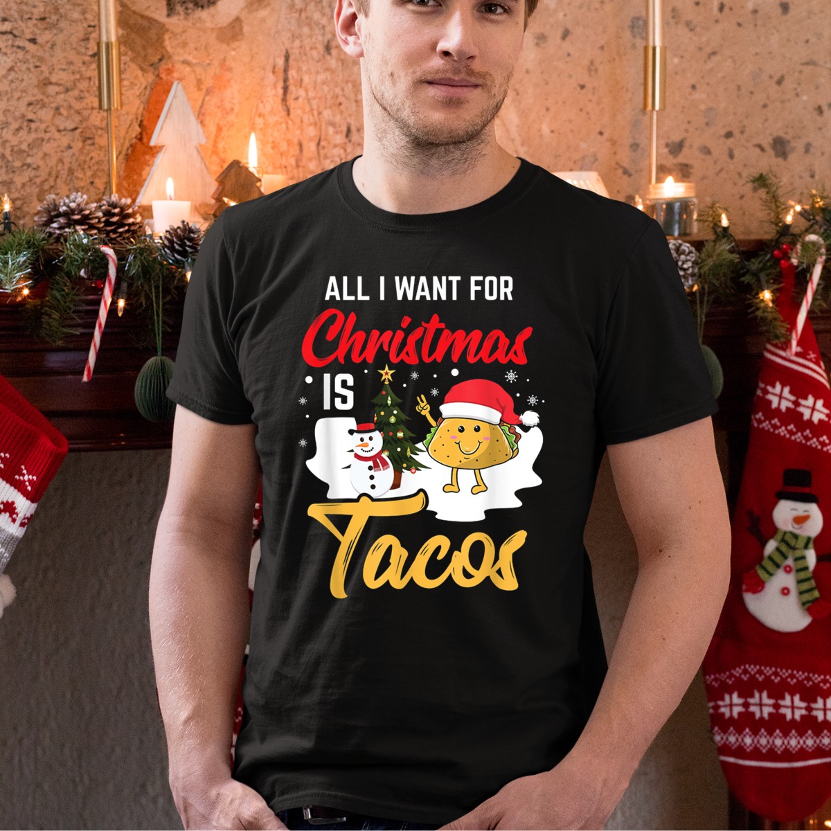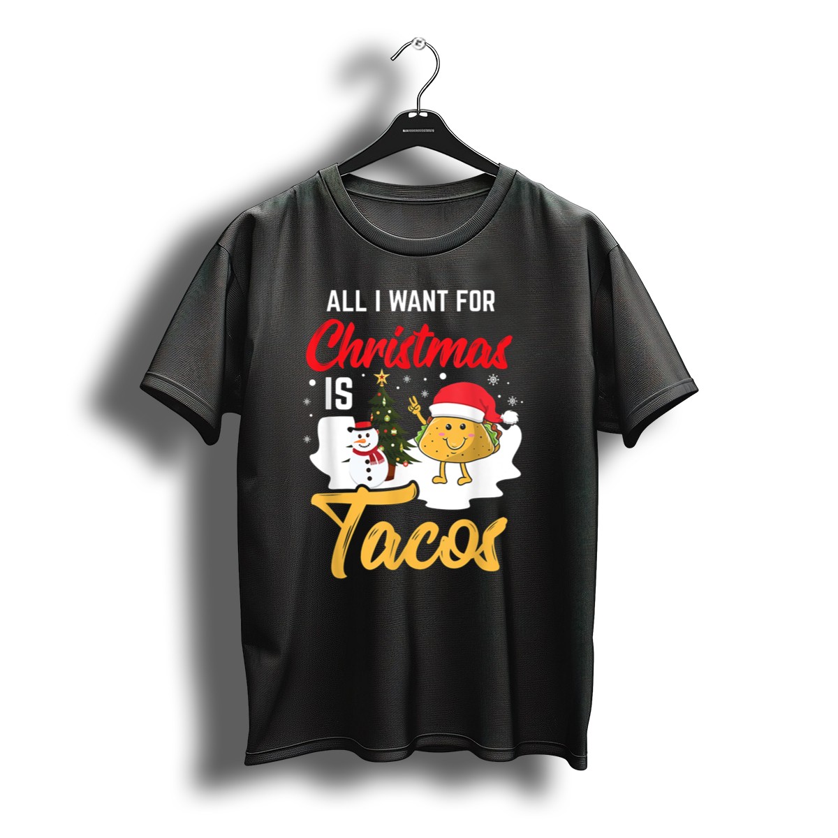 Be the first to review “All I Want For Christmas Is Tacos Snowman Santa Hat Humor T-Shirt”