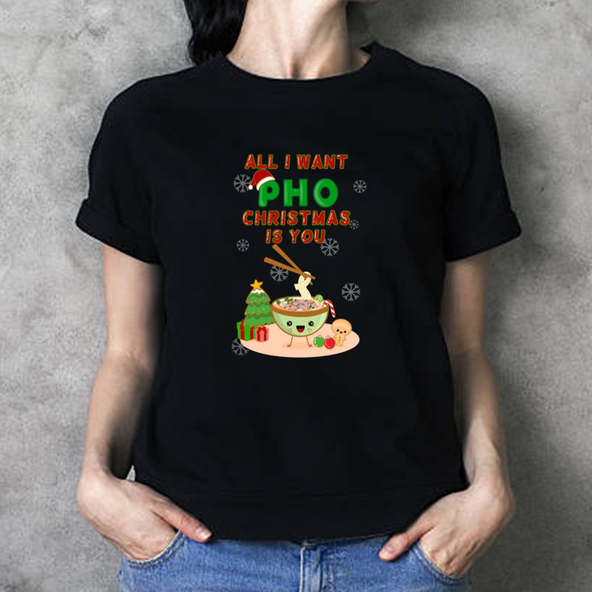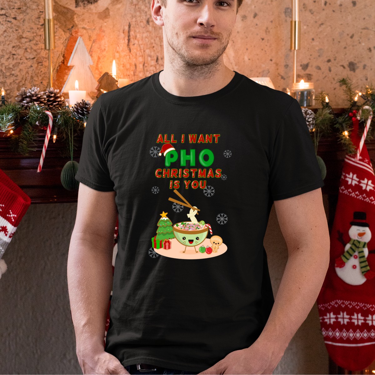 Celebrate the holiday season with a dash of humor and a love for your favorite soup! The “All I Want Pho Christmas Is You” T-shirt features a whimsical design perfect for food lovers and holiday enthusiasts alike. This fan-made graphic is ideal for casual wear, themed events, or simply enjoying a cozy day at home. Crafted for comfort and style, this shirt is a delightful way to express your seasonal spirit while showcasing your love for pho.
