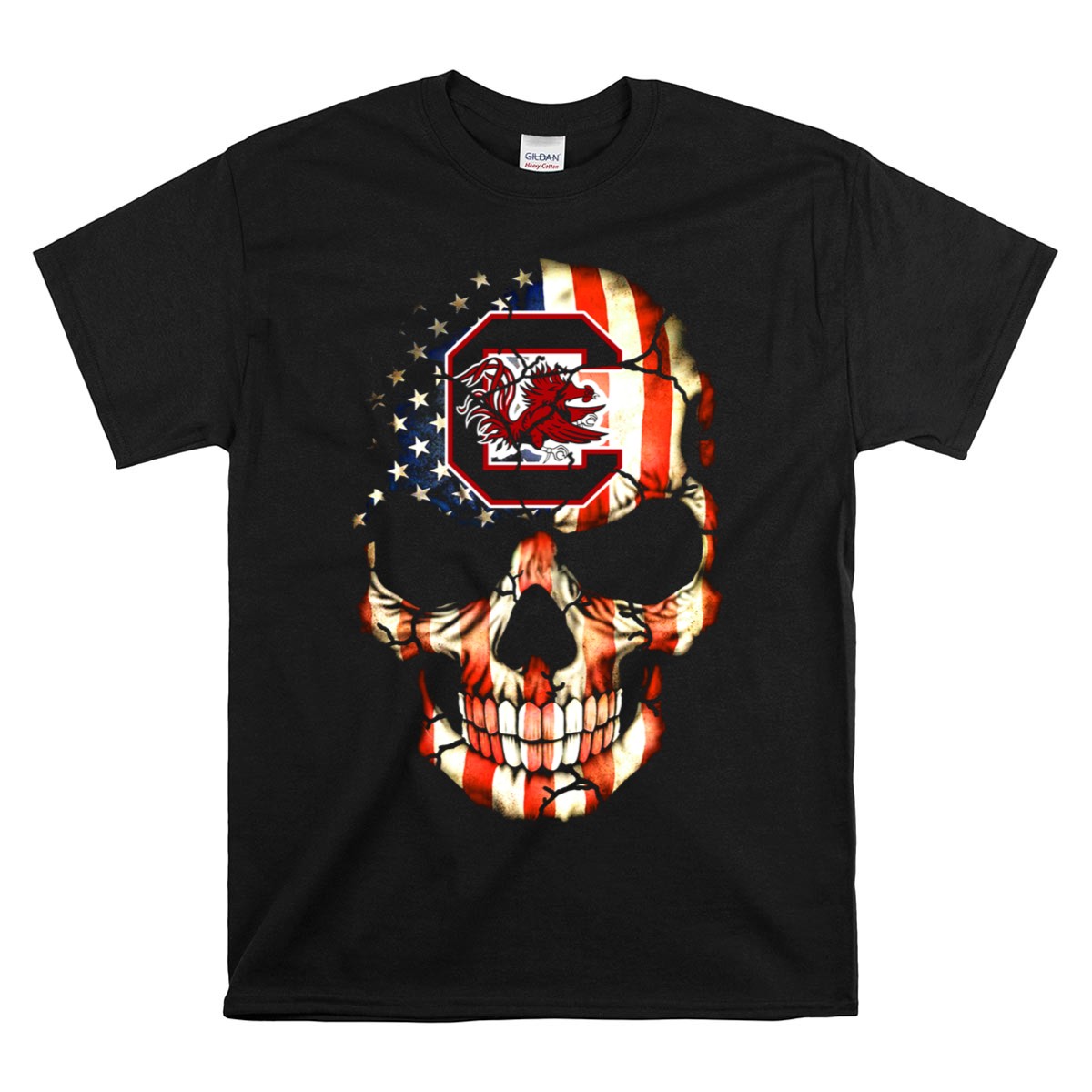Show your fierce spirit with our American Flag Skull with South Carolina Gamecocks T-Shirt, a must-have for any passionate Gamecocks fan. This shirt is perfect for casual outings, themed events, or simply showcasing your love for the team while enjoying daily wear. Crafted with a unique fan-made design, printed in the USA, this T-shirt combines comfort and style, making it a standout addition to your wardrobe.
