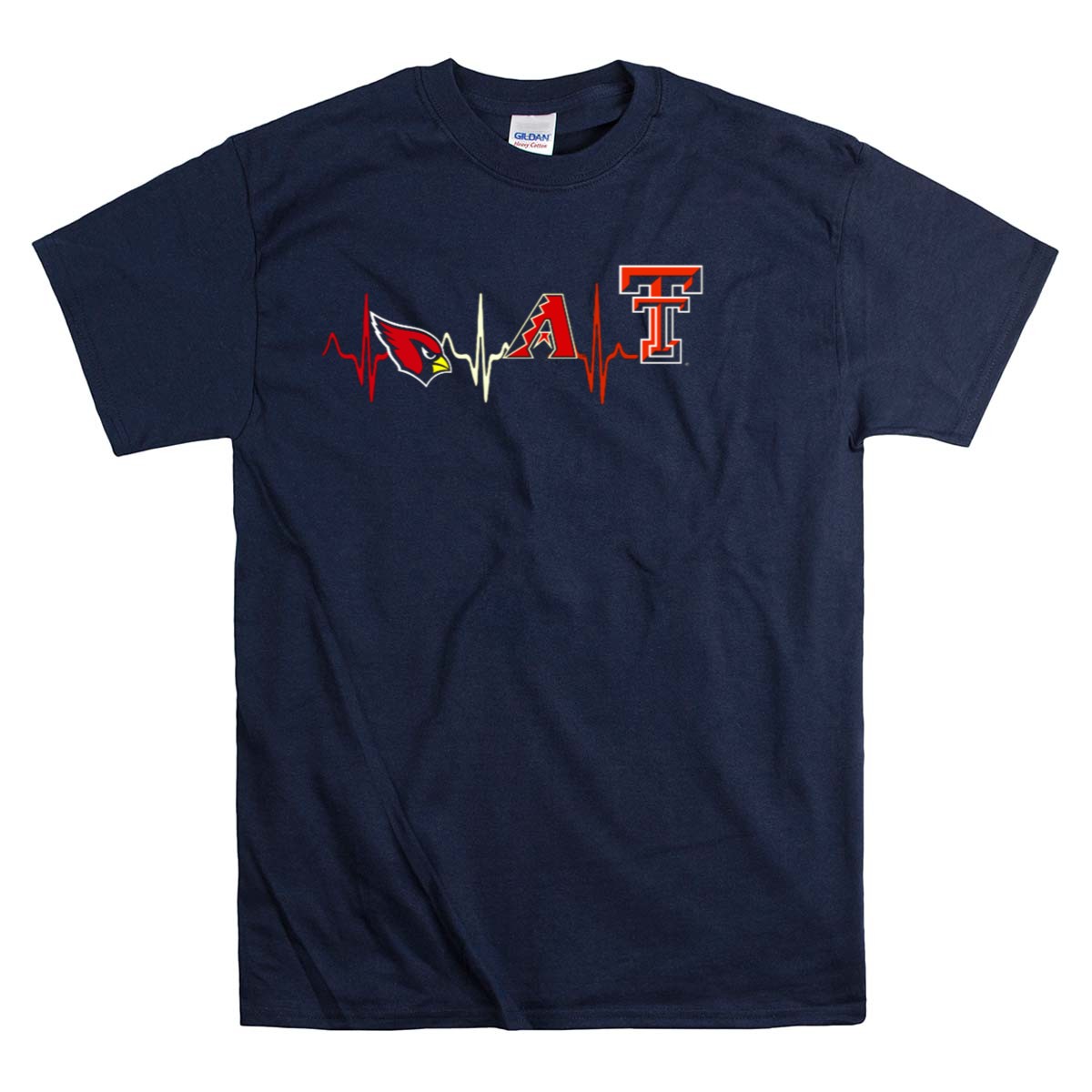 Arizona Cardinals And Arizona Diamondbacks With Texas Tech Red Raiders Heartbeat T-Shirt