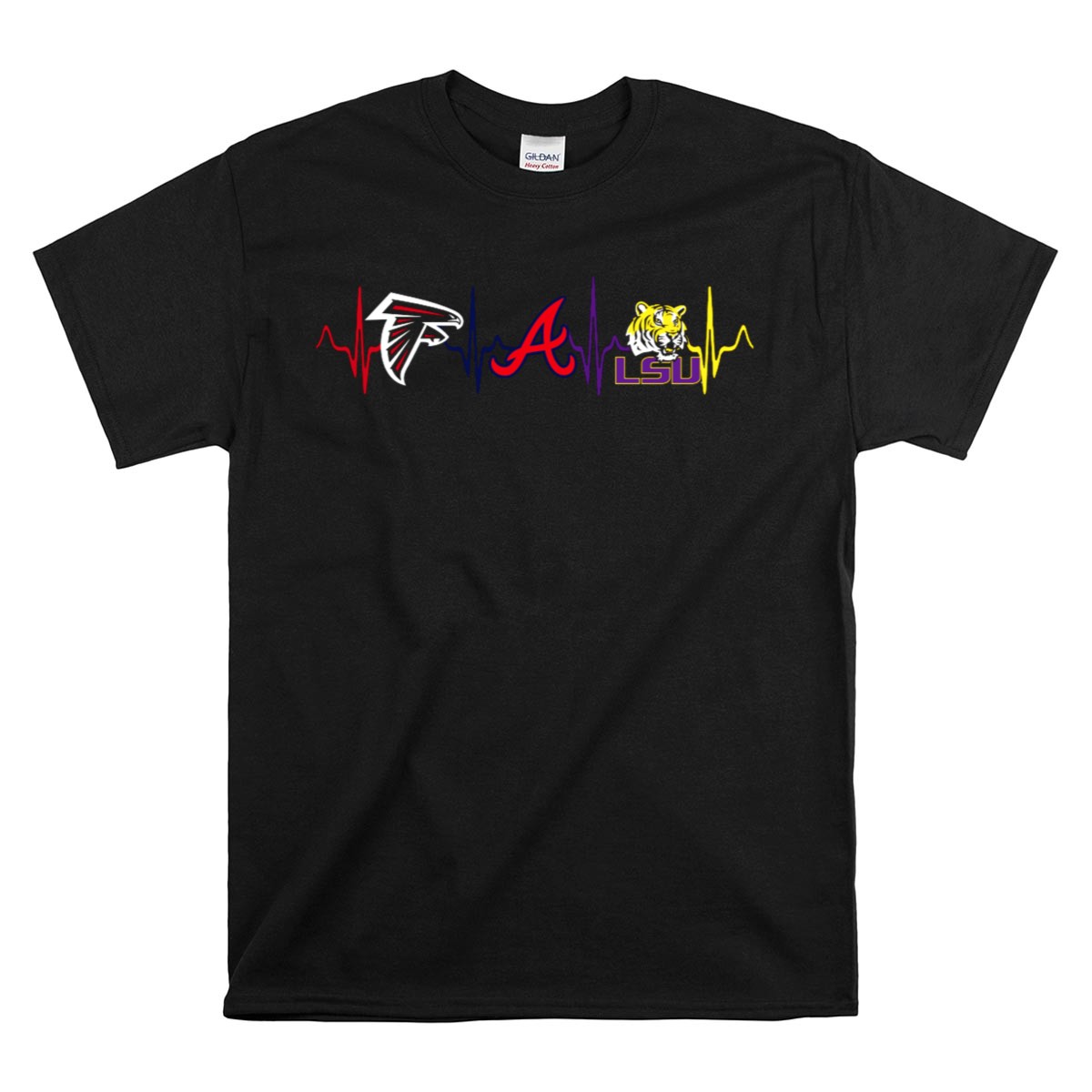 Show your unwavering support for your favorite teams with the Atlanta Falcons Braves LSU Tigers Heartbeat T-Shirt! This fan-made design captures the spirit of sportsmanship and pride, making it the perfect choice for dedicated fans. Ideal for casual wear, themed events, or just lounging around, this T-shirt ensures you stand out while staying comfortable. With its unique heartbeat graphic, it’s a great way to express your love for the game and your favorite teams!