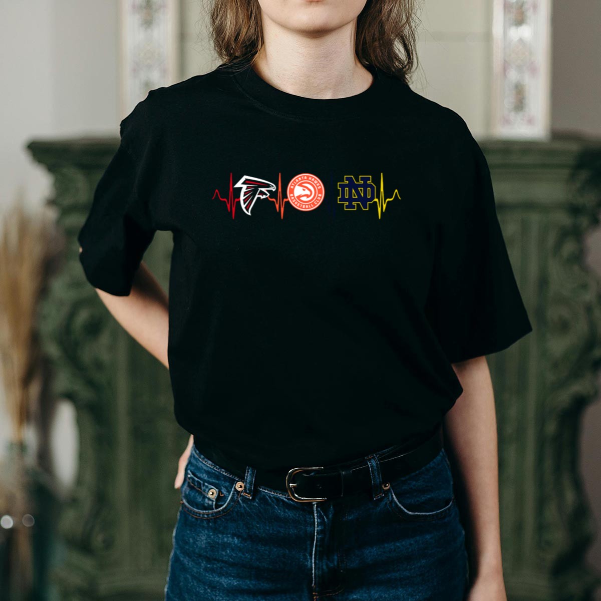 Show your unwavering support for the Atlanta Falcons and Notre Dame Fighting Irish with this unique heartbeat graphic T-shirt! Perfect for fans who want to represent their teams in style, this shirt is ideal for casual outings, themed events, or simply lounging at home. Made with soft, breathable cotton and featuring a classic fit, it ensures comfort while showcasing your team spirit. Stand out from the crowd with this fan-made design, proudly printed in the USA!