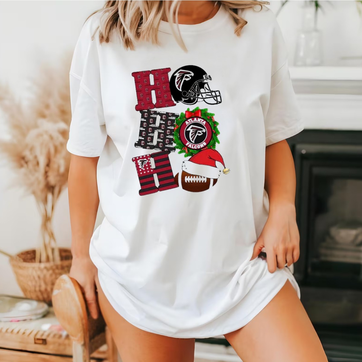 Celebrate the holiday season with a festive twist on your favorite football team! The Atlanta Falcons Ho Ho Ho Merry Christmas Football Helmet Wreath Santa Hat T-Shirt is perfect for fans who want to showcase their team spirit while embracing the joy of Christmas. Whether you’re attending a themed event, gathering with friends, or just enjoying a casual day out, this fun and unique shirt is sure to turn heads and spread cheer. Made with a fan-made design and printed in the USA, it’s a great addition to any Falcons supporter’s wardrobe.