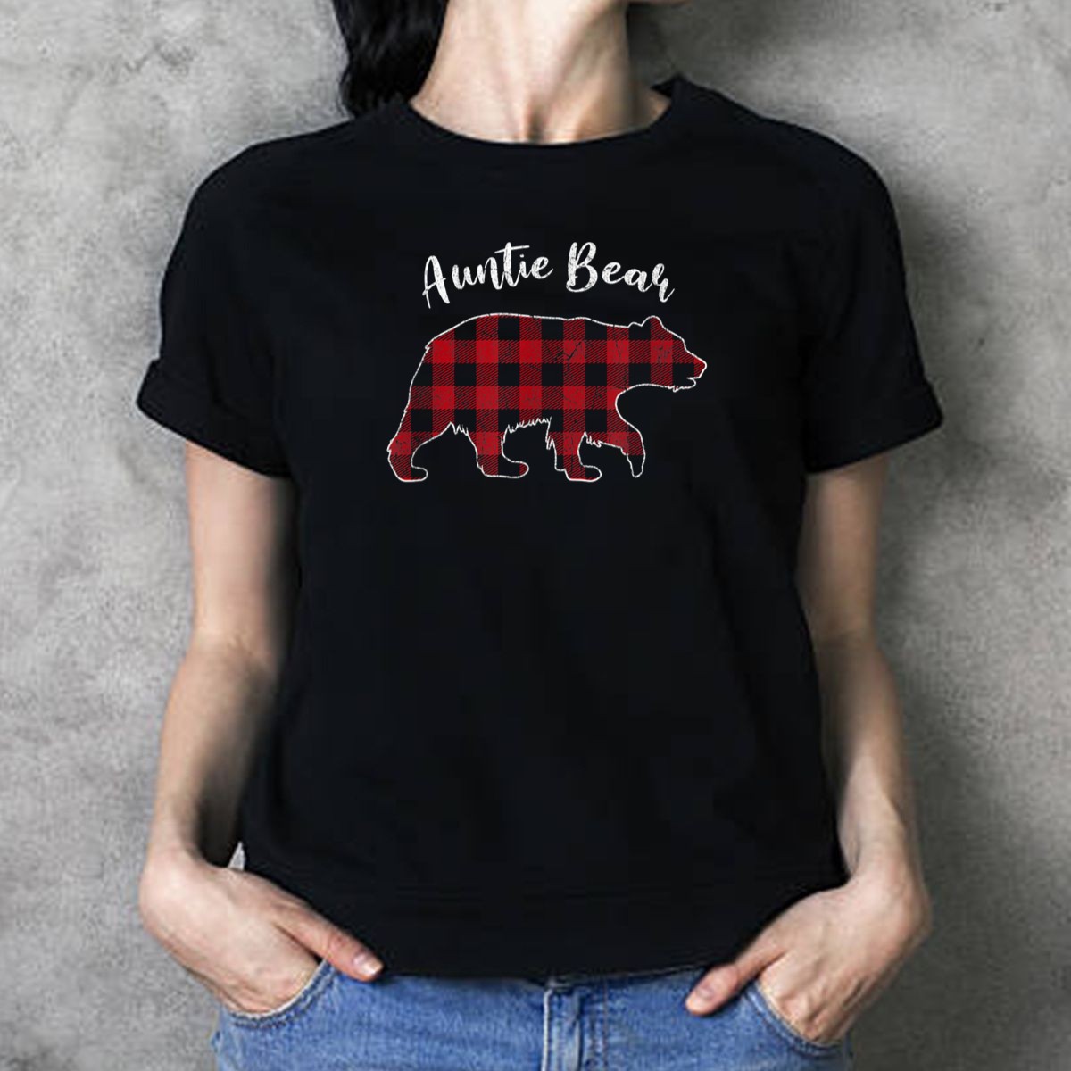 Be the first to review “Auntie Bear Red Buffalo Plaid Christmas T Shirt”