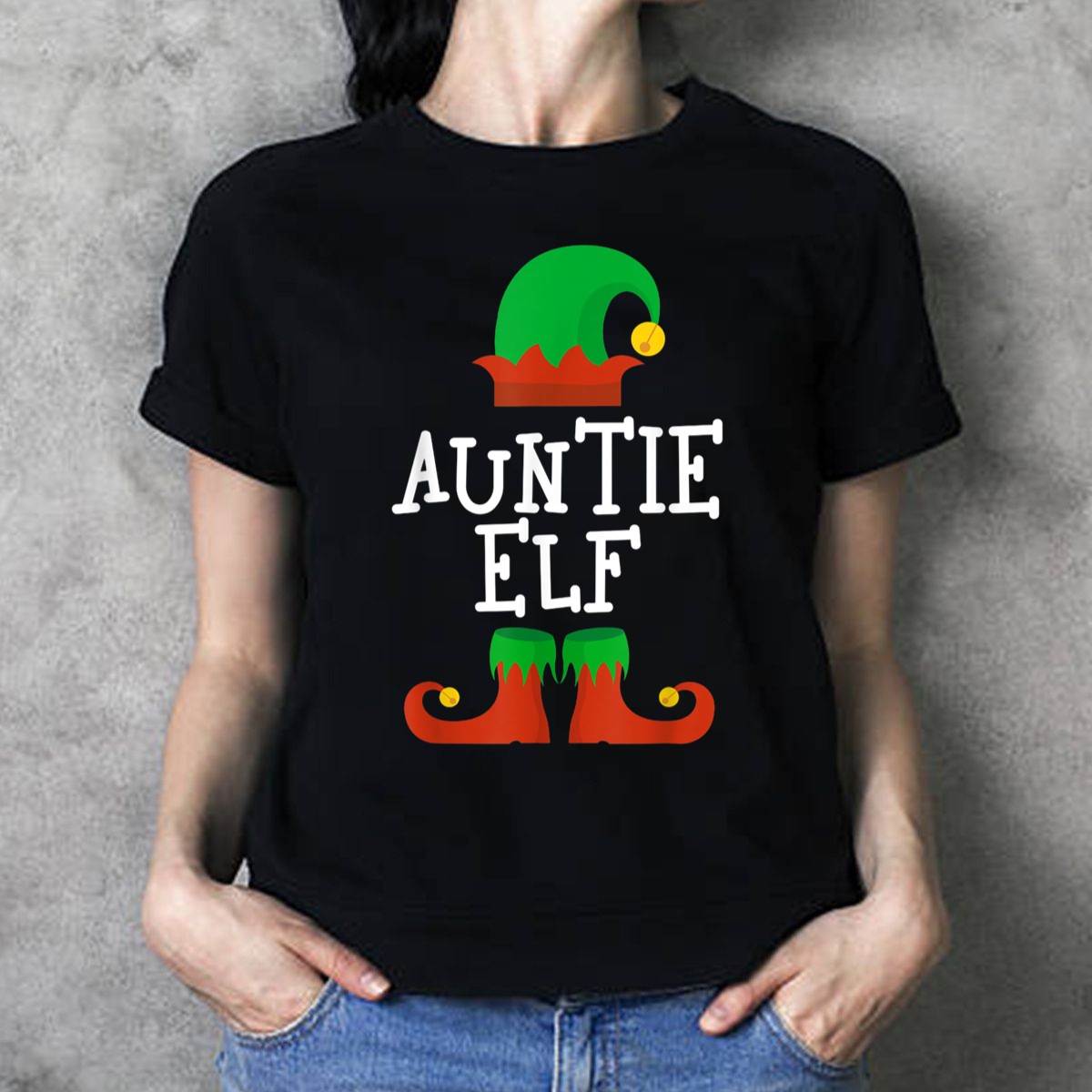 Auntie Elf Holiday Hat And Shoes Christmas T-Shirt