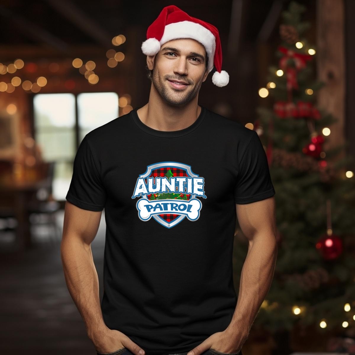 Celebrate the festive season with our Auntie Patrol Christmas Holiday Dog Plaid Shield Bone T-Shirt! Perfect for dog lovers and proud aunts, this fun and whimsical tee is designed for casual wear during holiday gatherings, themed events, or simply to showcase your love for your furry friends. Made with a unique fan-made design, this shirt is printed in the USA, ensuring both quality and a touch of holiday spirit in every wear.
