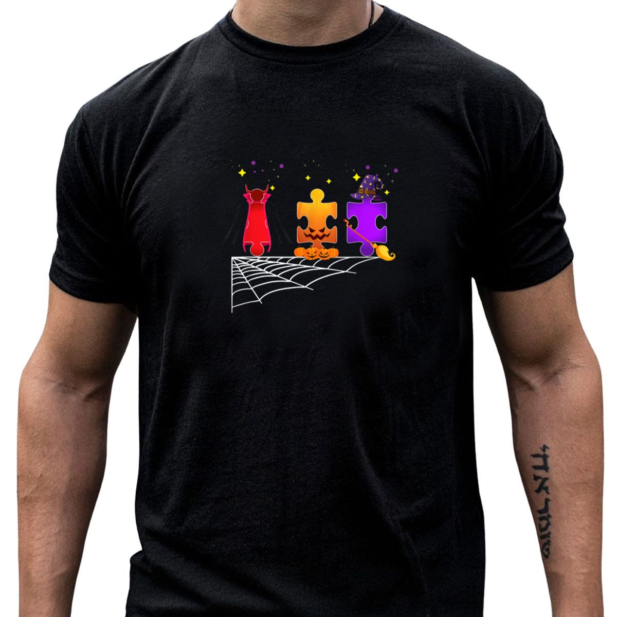 Celebrate Halloween with a twist of awareness in our Autism Awareness Halloween Puzzle Piece Witch and Vampire T-Shirt. Perfect for individuals who want to spread positivity and understanding, this fan-made design showcases a unique blend of festive spirit and advocacy. Ideal for casual outings, themed events, or daily wear, this shirt is a conversation starter that combines comfort and style while supporting a meaningful cause.