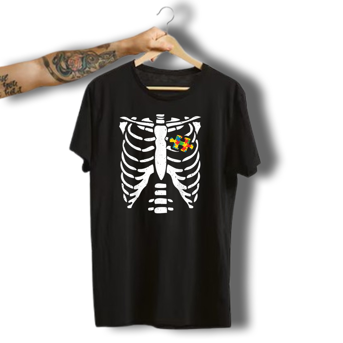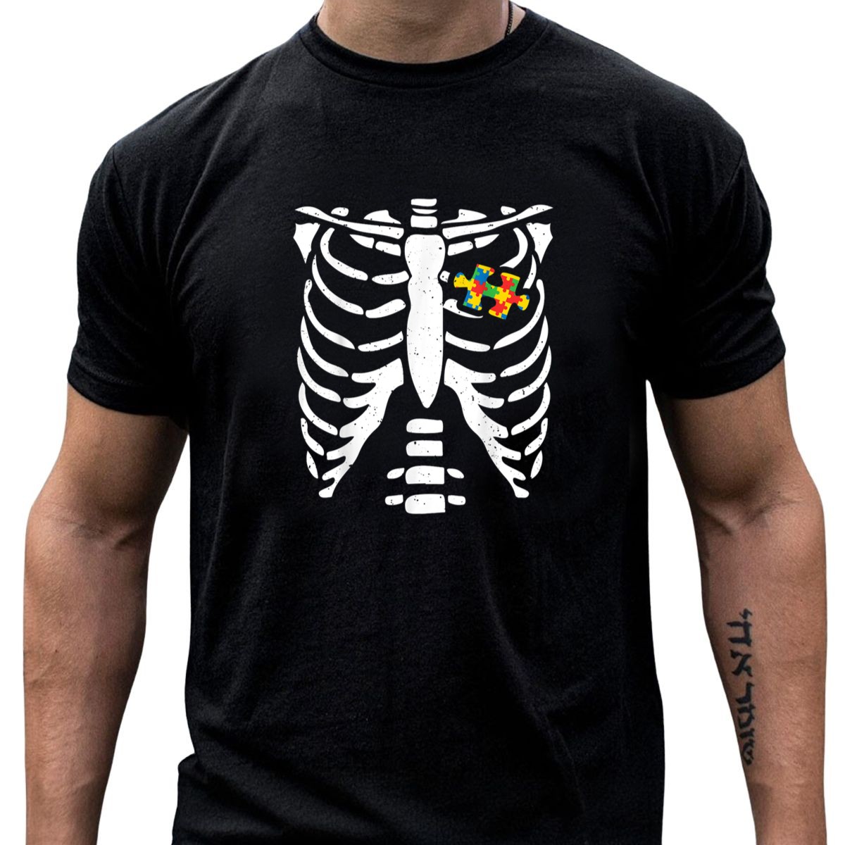 Embrace the spirit of Halloween with our Autism Rib Cage Puzzle Piece Skeleton T-Shirt! This fan-made design is perfect for anyone looking to celebrate neurodiversity in a fun and spooky way. Ideal for casual outings, themed events, or everyday wear, this shirt showcases a unique blend of creativity and awareness, making it a must-have for supporters of autism advocacy. Made for comfort and style, it’s sure to be a conversation starter and a favorite in your wardrobe.