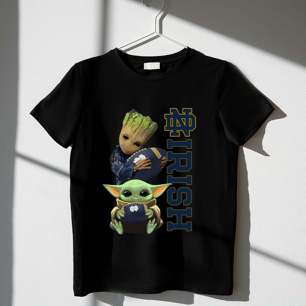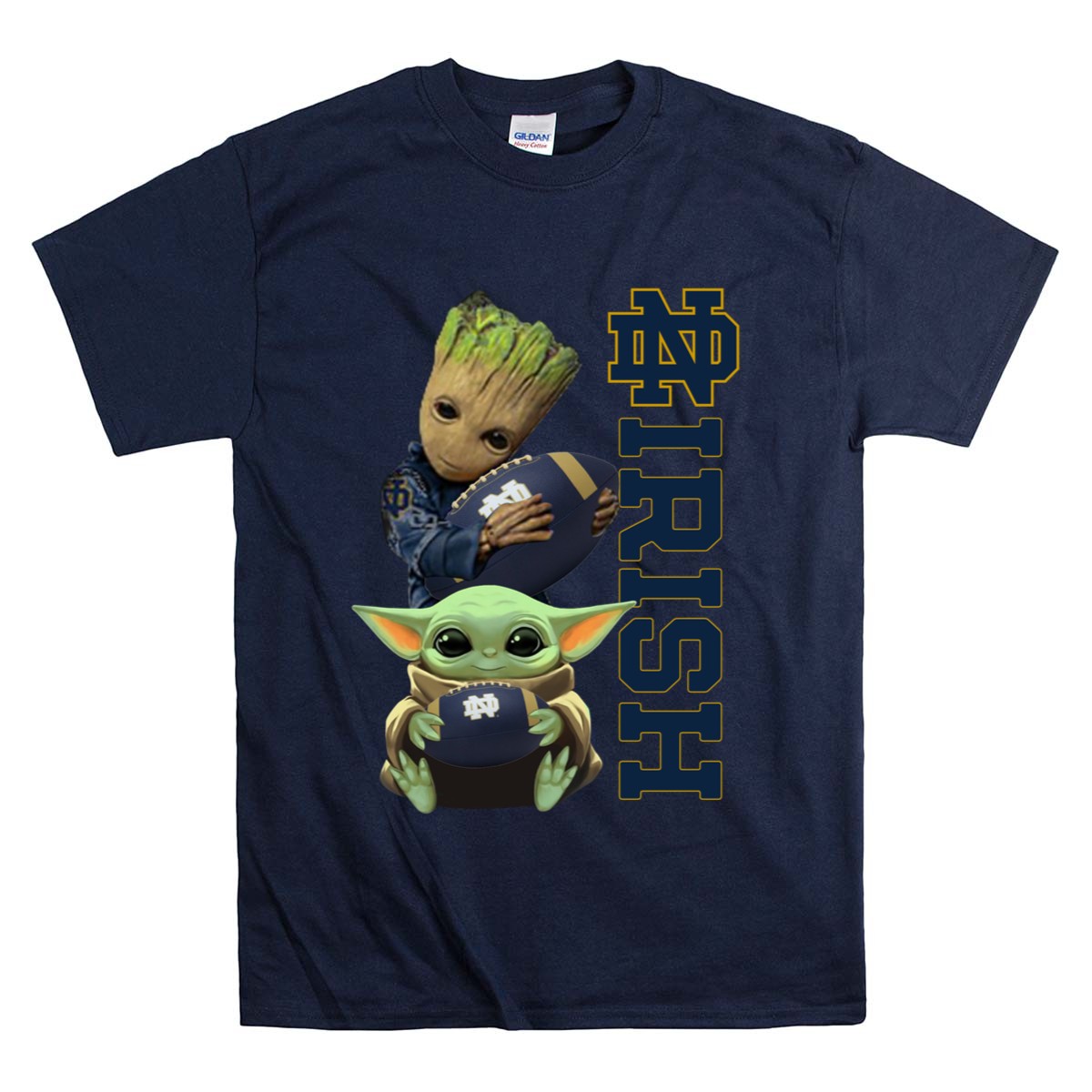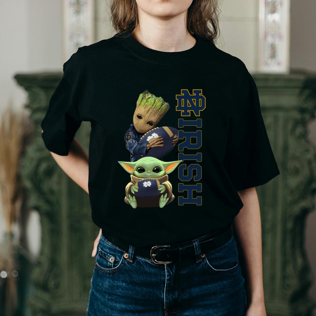Baby Groot And Baby Yoda Hug Ball Notre Dame Fighting Irish Shirt