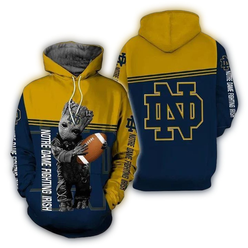Embrace your school spirit with the Baby Groot Hug Ball Notre Dame Fighting Irish All Over Print Hoodie, designed for fans who want to showcase their love for both the iconic team and a beloved character. This hoodie is perfect for game days, casual outings, or cozy nights in, offering a unique blend of fandom and comfort that stands out from the crowd.