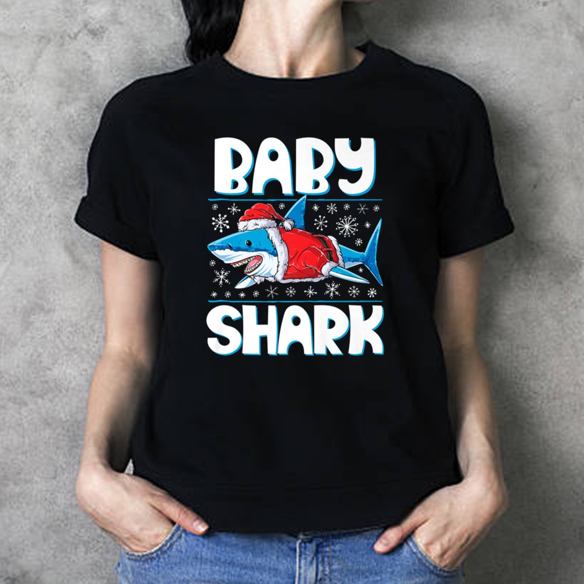 Celebrate the holiday season with our Baby Shark Santa Hat Christmas Snowflakes T-Shirt! This fun and festive tee is perfect for fans of all ages who want to bring a splash of joy to their casual wear. With its adorable design featuring the beloved Baby Shark in a Santa hat surrounded by snowflakes, it’s an ideal choice for themed events, family gatherings, or just spreading holiday cheer on a daily basis. Made for comfort and style, this shirt will be a delightful addition to your winter wardrobe.