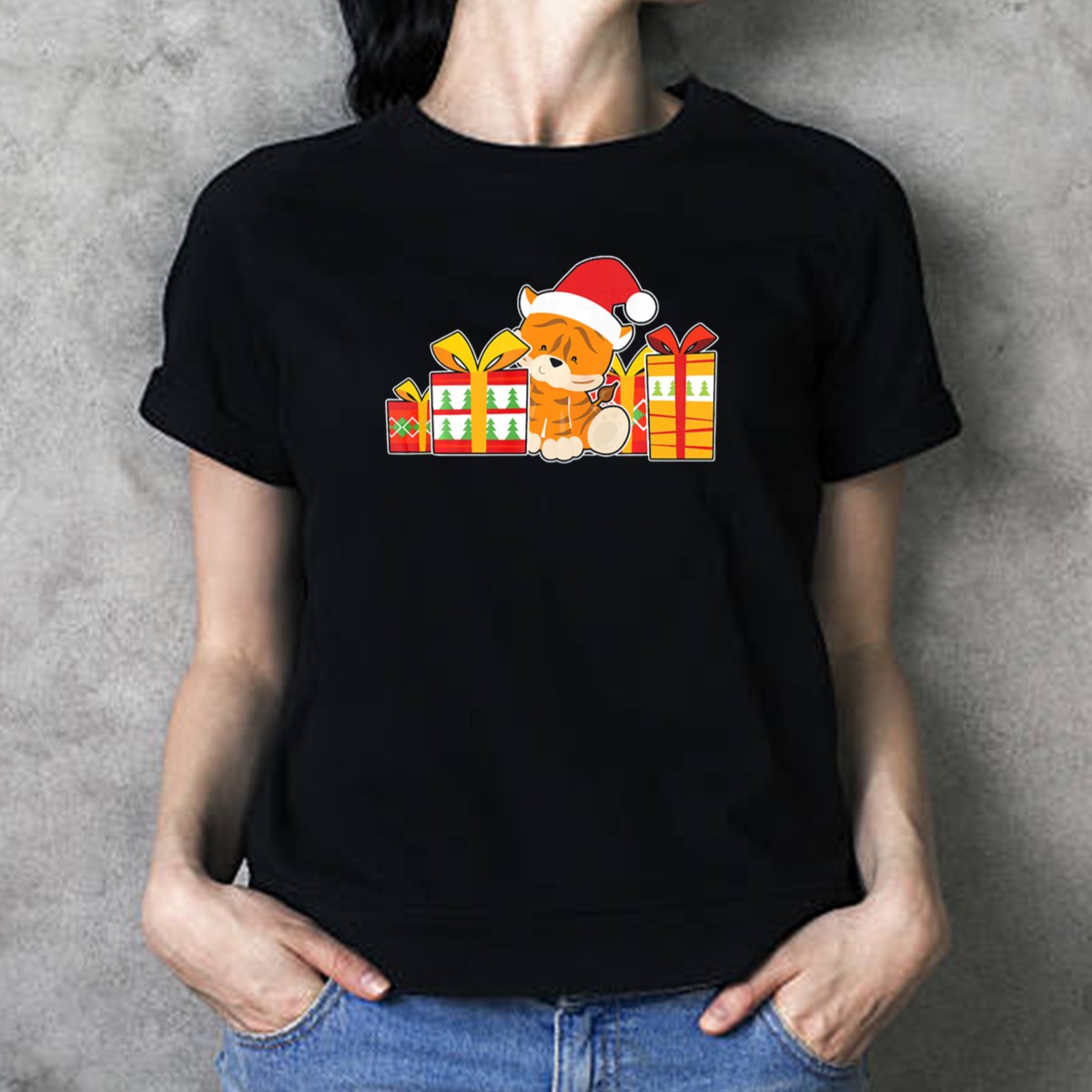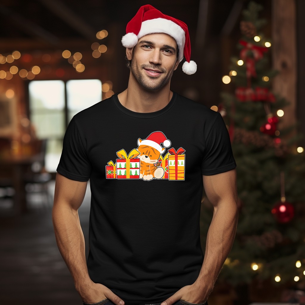 Celebrate the holiday season with our adorable Baby Tiger With Santa Hat Christmas Presents T-Shirt! This fun and festive shirt is perfect for animal lovers and holiday enthusiasts alike. Whether you’re attending a themed event, casual gatherings, or simply spreading cheer during daily wear, this shirt is sure to bring smiles. Featuring a charming design printed in the USA, it’s a unique addition to your all-season wardrobe that showcases your playful spirit!