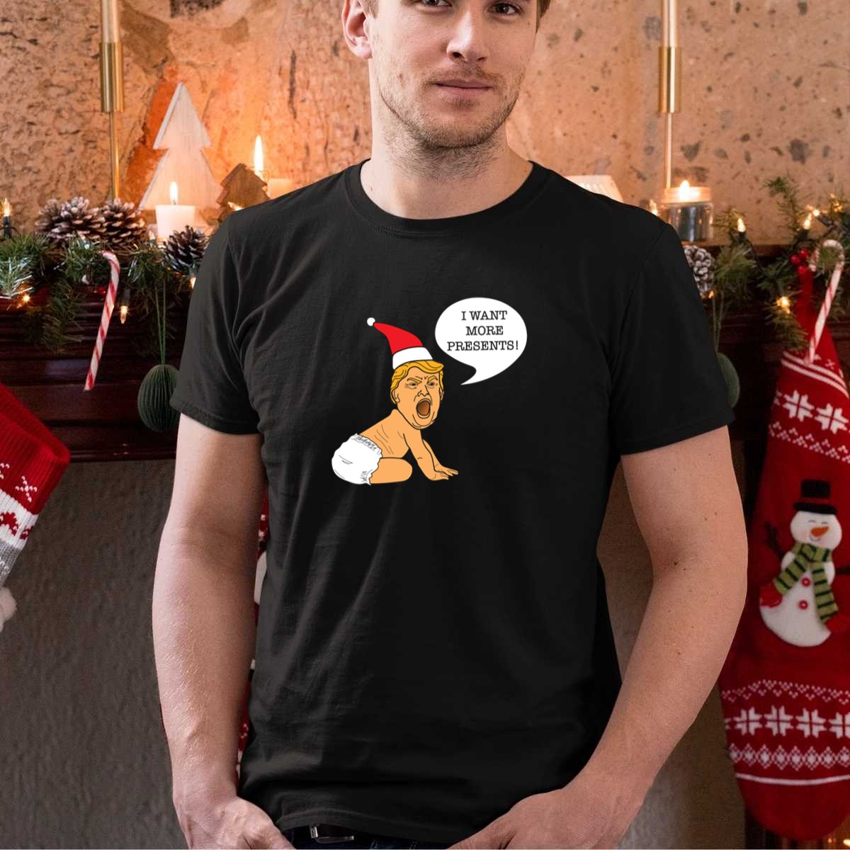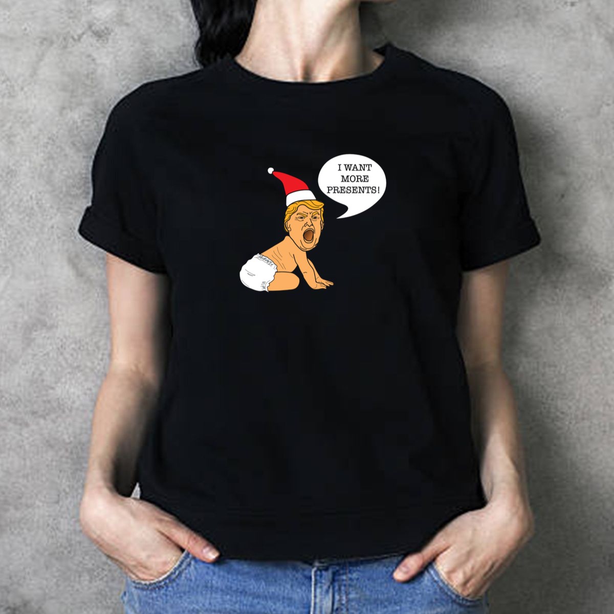 Celebrate the holiday season with our Baby Trump “I Want More Presents” Christmas Santa Hat T-Shirt! This playful and festive design is perfect for little ones who love to spread cheer during family gatherings, themed events, or just daily wear. Made for fun-loving toddlers and their families, this shirt is a unique addition to any holiday wardrobe, showcasing a fan-made design proudly printed in the USA. Let your child shine bright this Christmas with a touch of humor and holiday spirit!