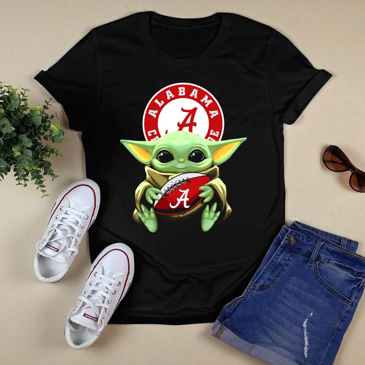 Show your love for the Alabama Crimson Tide and the adorable Baby Yoda with this fan-made graphic T-shirt! Perfect for die-hard football fans and lovers of all things cute, this shirt combines fandom with a playful twist. Whether you’re cheering from the stands, enjoying a casual day out, or attending themed events, this classic fit tee is designed to keep you comfortable and stylish throughout the season.
