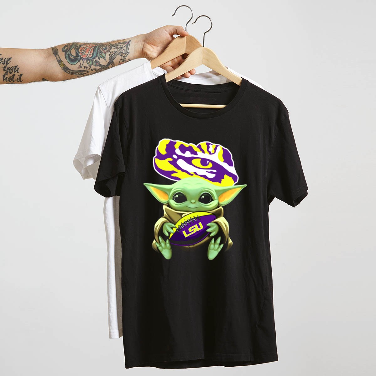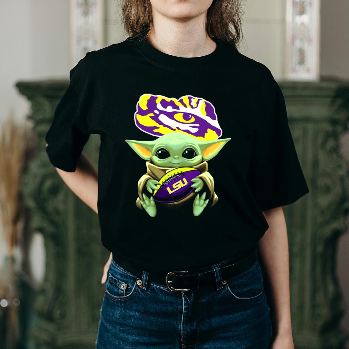 Show off your love for the LSU Tigers and the adorable Baby Yoda with this unique fan-made graphic T-shirt! Perfect for dedicated fans and casual wearers alike, this shirt is ideal for game days, themed events, or just lounging around. Crafted for comfort and style, it features a playful design that celebrates both the iconic tiger spirit and the beloved character, making it a must-have addition to any LSU enthusiast’s wardrobe.