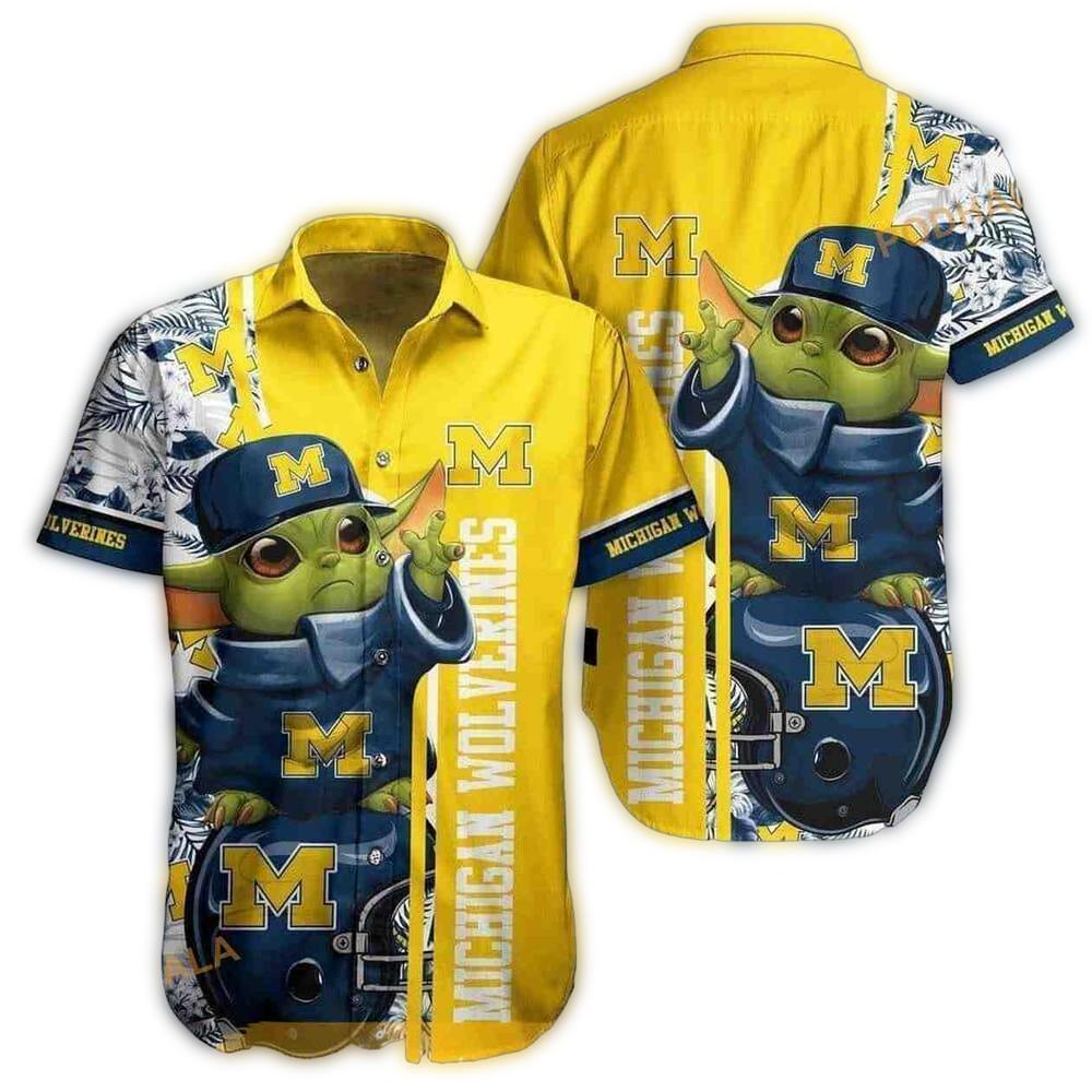 Baby Yoda Star Wars Floral With Michigan Wolverines Hawaiian Shirt