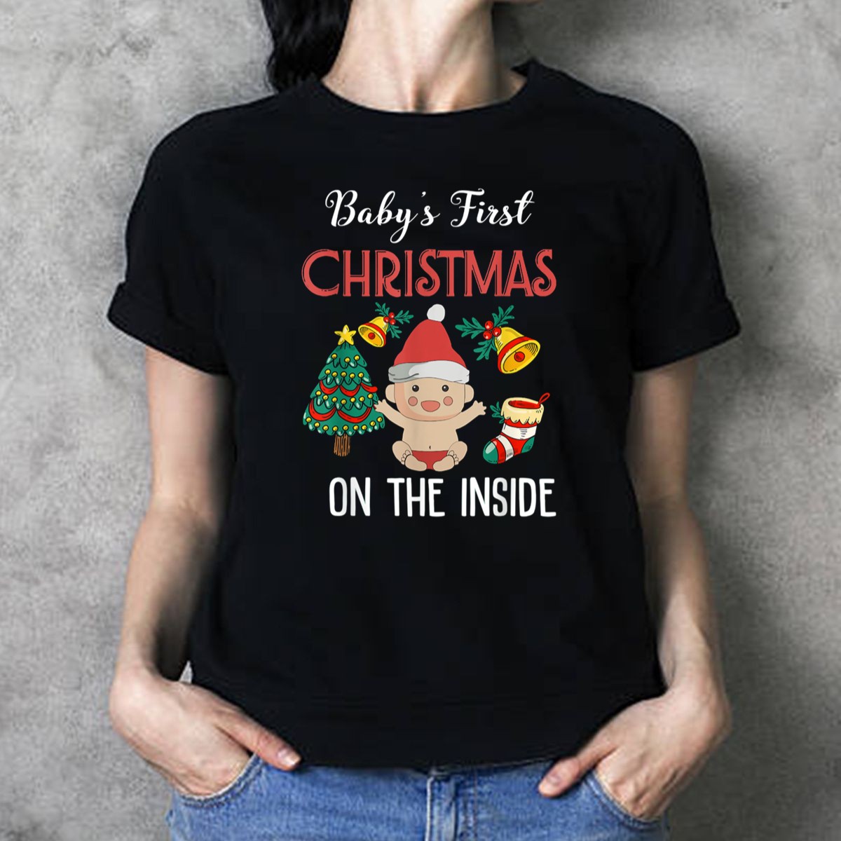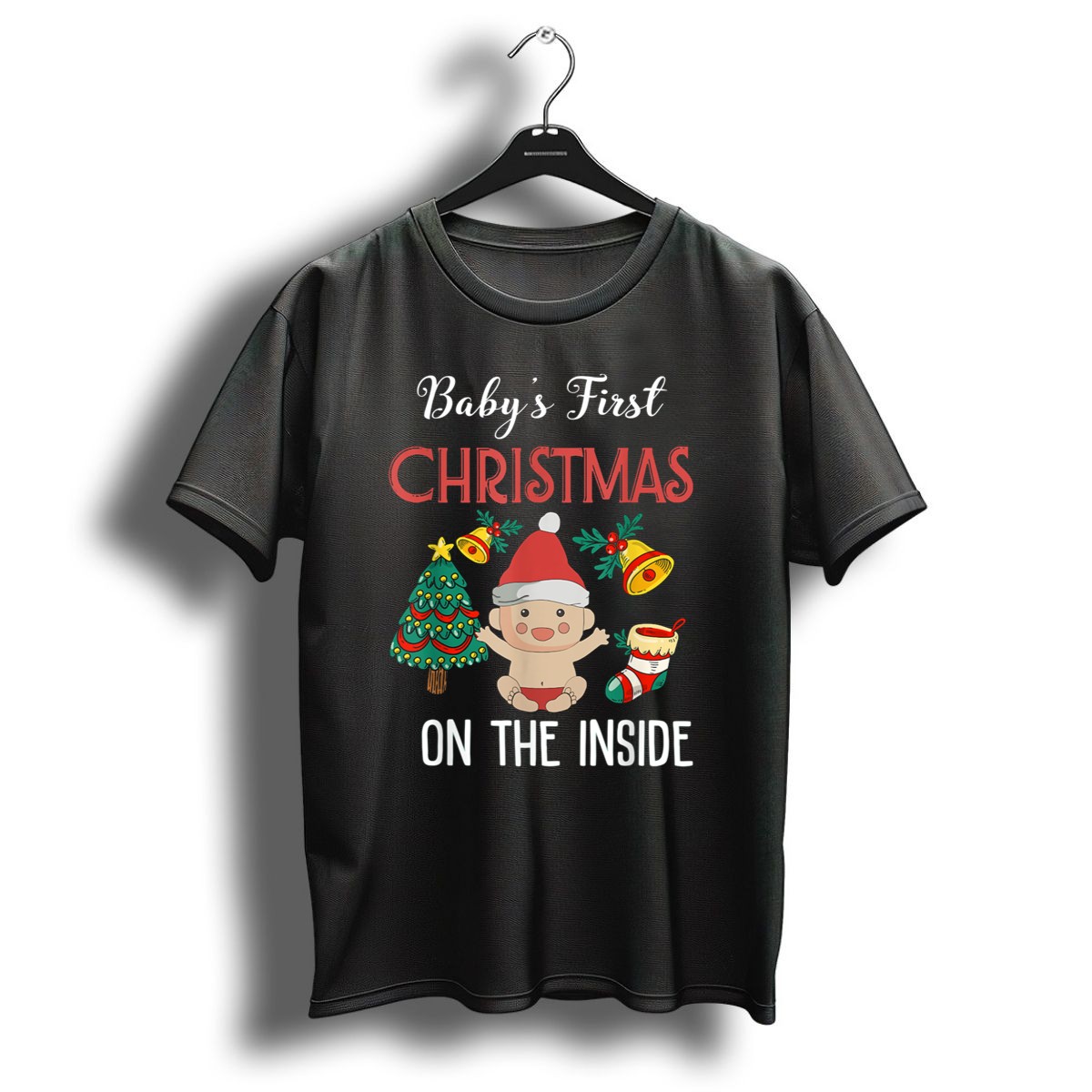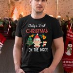 Babys First Christmas On The Inside Santa Hat Tree Bells Stocking T Shirt