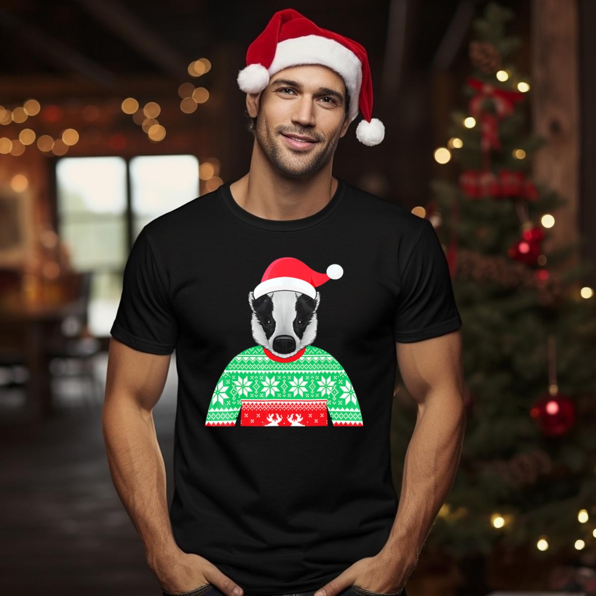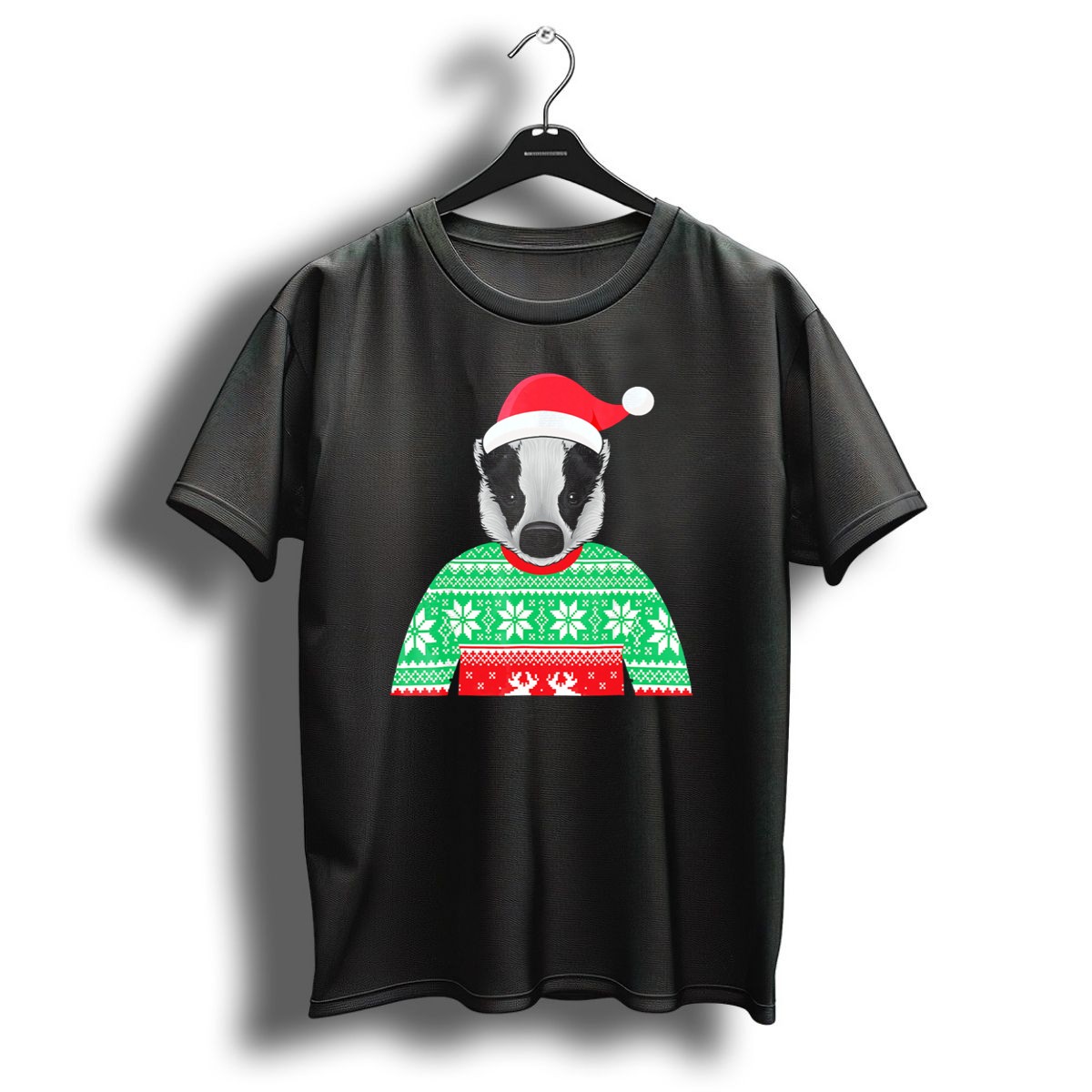 Be the first to review “Badger Christmas Sweater Santa Hat T Shirt”