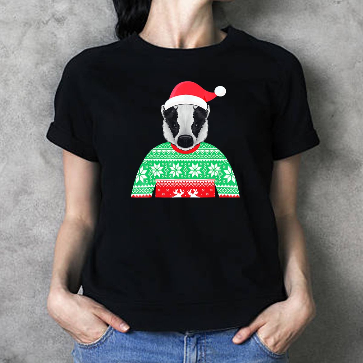 Badger Christmas Sweater Santa Hat T Shirt