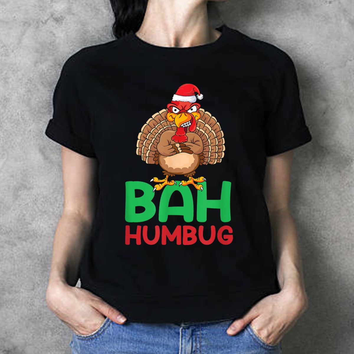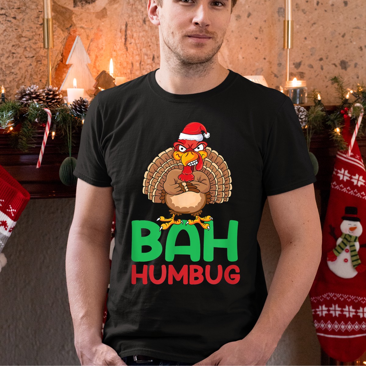 Embrace the holiday spirit with a twist of humor in our Bah Humbug Christmas Turkey With Santa Hat T-Shirt! Perfect for those who appreciate a playful take on festive traditions, this fan-made design is ideal for casual wear during themed events or daily outings. Crafted for comfort and style, this shirt brings a unique flair to your holiday wardrobe while celebrating the lighter side of the season.