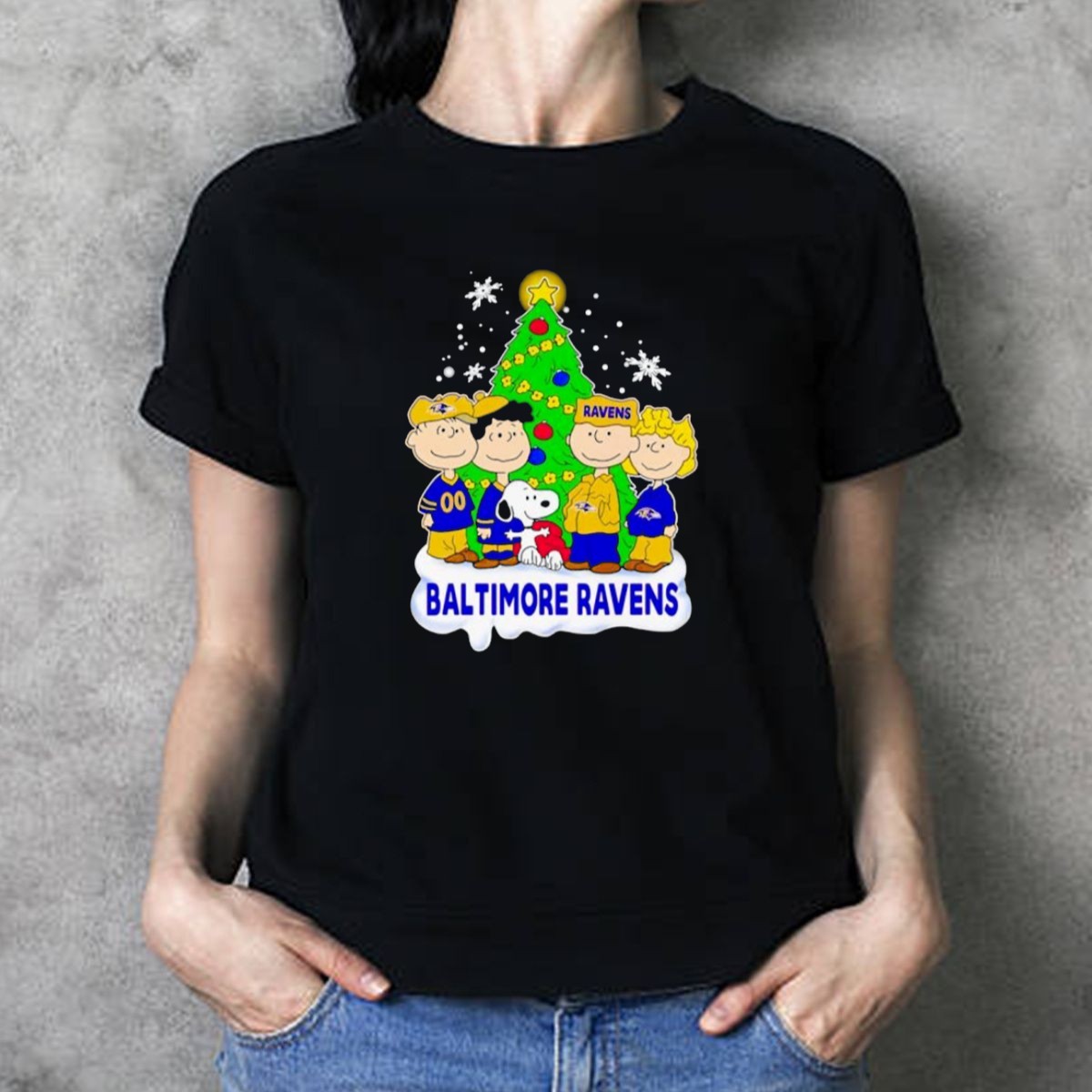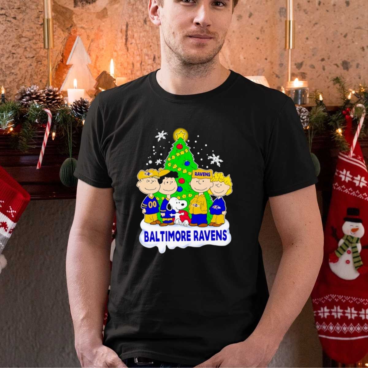 Celebrate the holiday season in style with our Baltimore Ravens Christmas Tree With Peanuts Characters T-Shirt! Perfect for die-hard Ravens fans and lovers of festive cheer, this unique design brings together the beloved Peanuts characters and your favorite football team, making it ideal for casual wear, themed events, or simply showing off your team spirit during the holidays. Made for comfort and durability, this shirt is a must-have for any Ravens enthusiast looking to spread joy and team pride.