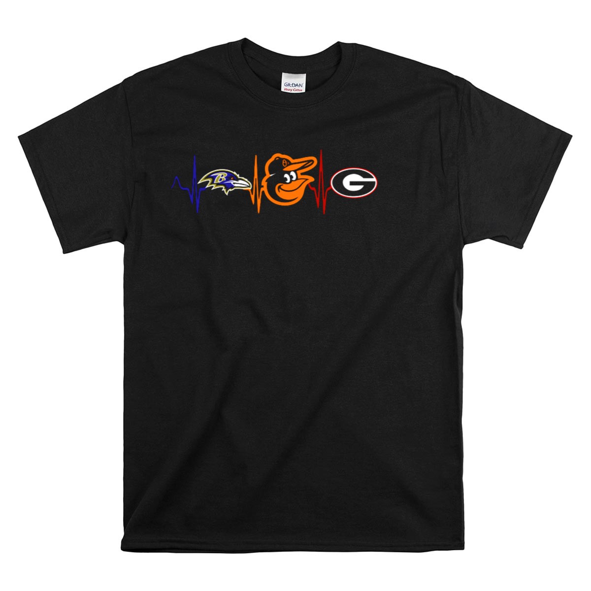 Show your unwavering support for the Baltimore Ravens and Baltimore Orioles while celebrating the spirit of the Georgia Bulldogs with our Heartbeat T-Shirt! Perfect for passionate fans and casual wear alike, this shirt is ideal for game days, themed events, or just hanging out with friends. Crafted for comfort and style, it features a unique fan-made design printed in the USA that truly stands out in any crowd.
