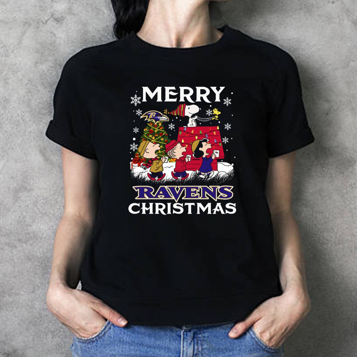 Celebrate the holiday season with a fun twist on your favorite characters! This Baltimore Ravens Snoopy Merry Christmas T-Shirt features beloved Peanuts characters like Lucy, Linus, and Woodstock, making it perfect for fans of all ages. Whether you’re cheering on your team at a game, attending a themed event, or simply enjoying daily wear, this shirt combines festive cheer with team spirit for a unique and playful look. Printed in the USA, this fan-made design is sure to bring a smile to everyone around you!