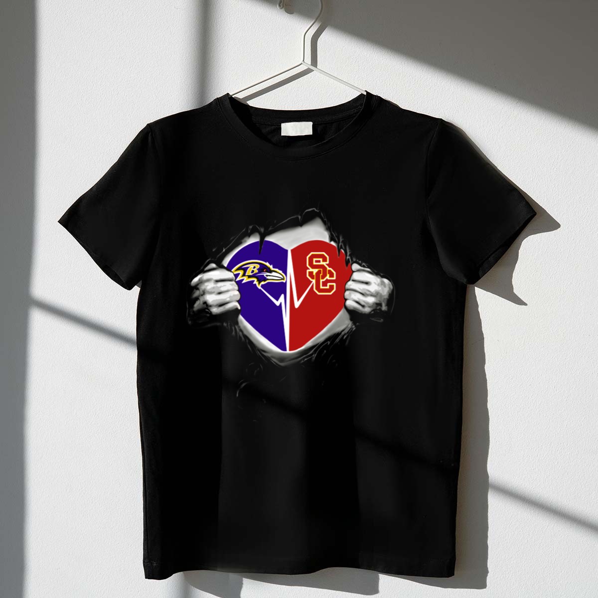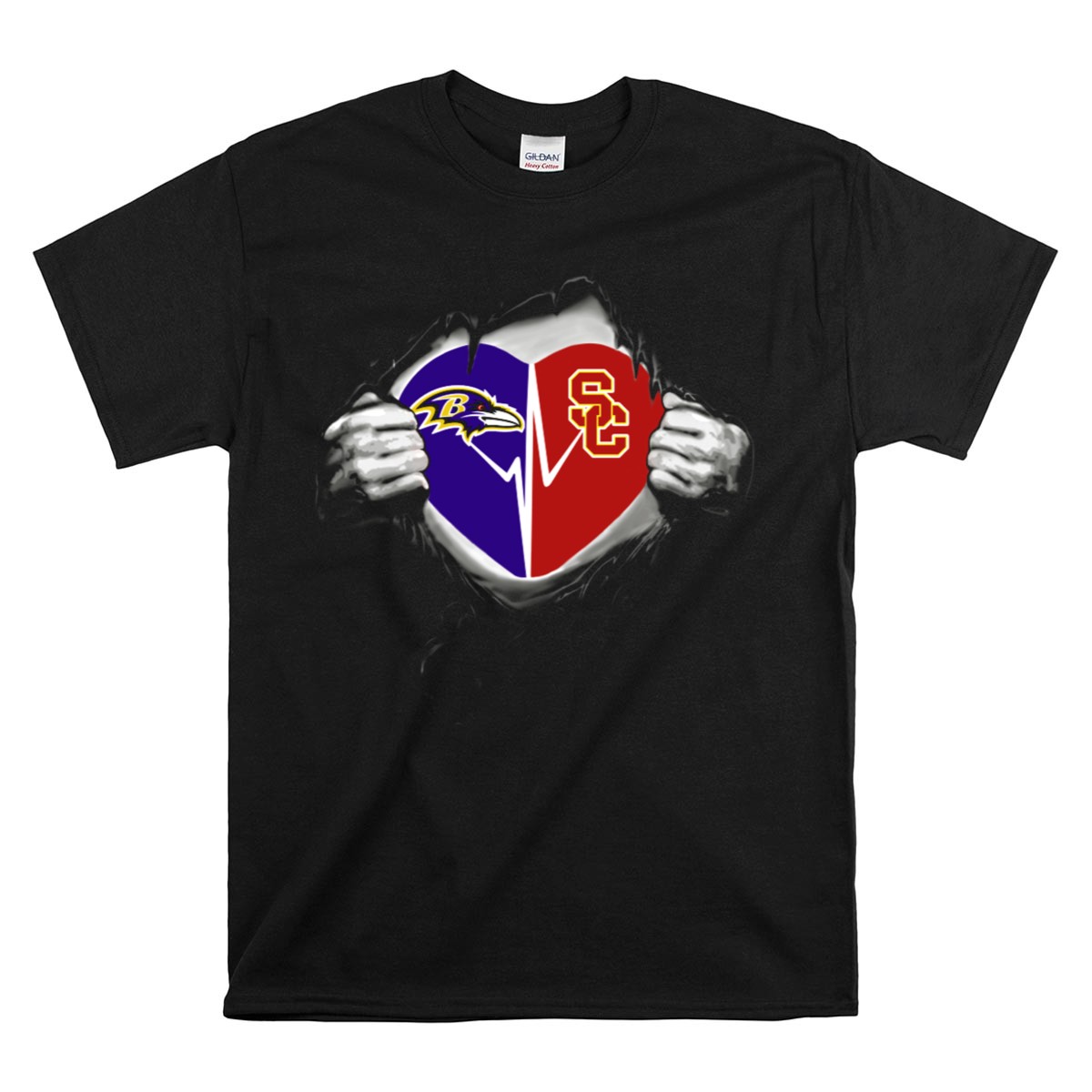 Show your unwavering support for the Baltimore Ravens and USC Trojans with this unique Heartbeat Split T-Shirt! Perfect for fans who want to showcase their pride in both teams, this shirt is ideal for casual outings, themed events, or simply lounging at home. Crafted with care in the USA, this fan-made design stands out with its striking visual appeal, making it a must-have addition to any sports enthusiast’s wardrobe.