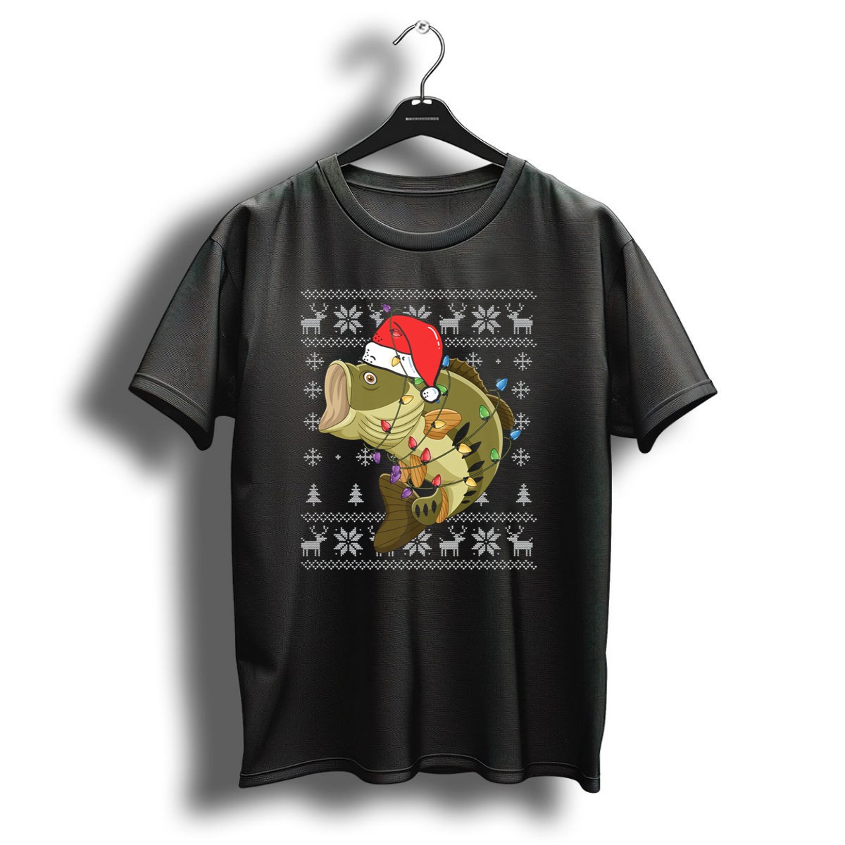Get ready to reel in the holiday spirit with our Bass Fish Christmas Lights Santa Ugly Sweater Snowflake Reindeer T-Shirt! Perfect for fishing enthusiasts and anyone who loves to celebrate the festive season with a touch of humor, this shirt is ideal for casual wear, themed events, or daily outfits. Made with a fan-made design printed in the USA, it combines comfort and a unique festive flair that will surely make you the life of the party!
