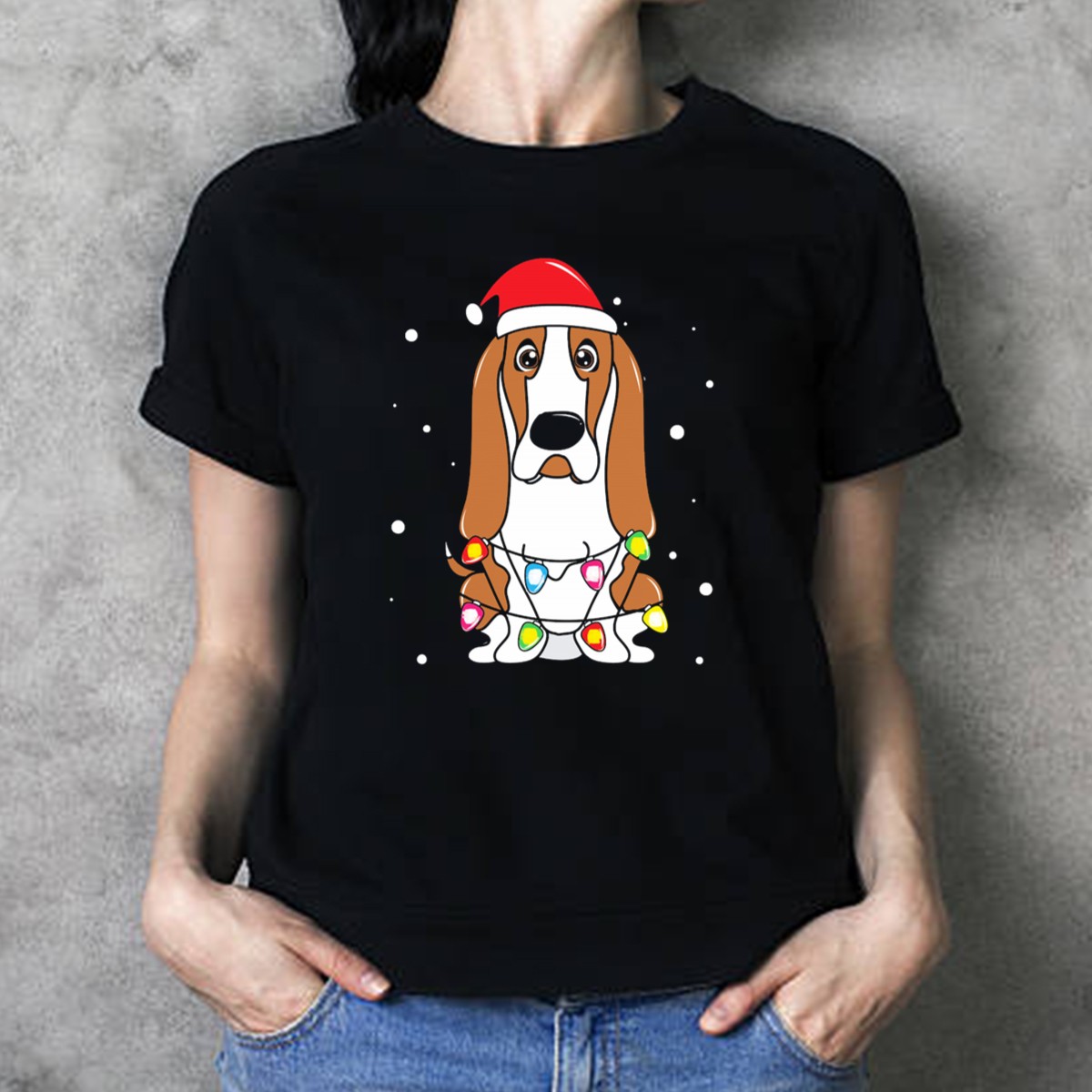 Celebrate the holiday season with our Basset Hound Christmas Lights Santa Hat Snowflakes T-Shirt! Perfect for dog lovers and festive fun, this cheerful tee features an adorable design that brings joy to any casual gathering or themed event. Made for comfort and style, it’s the ideal choice for daily wear, ensuring you stay cozy while spreading holiday cheer. With its unique fan-made print, this shirt is a must-have addition to your seasonal wardrobe!