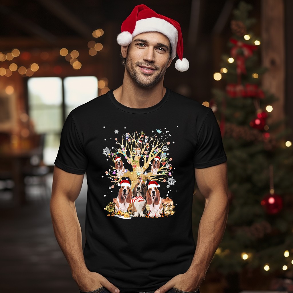 Be the first to review “Basset Hound Christmas Tree Ornament With Santa Hats And Holiday Decorations T-Shirt”