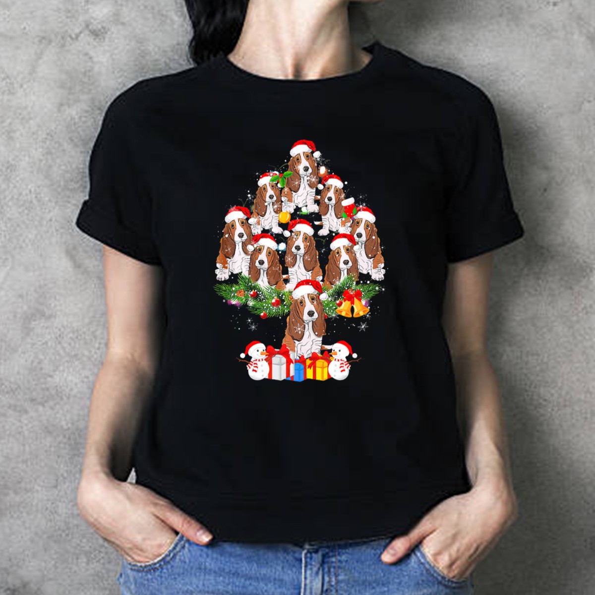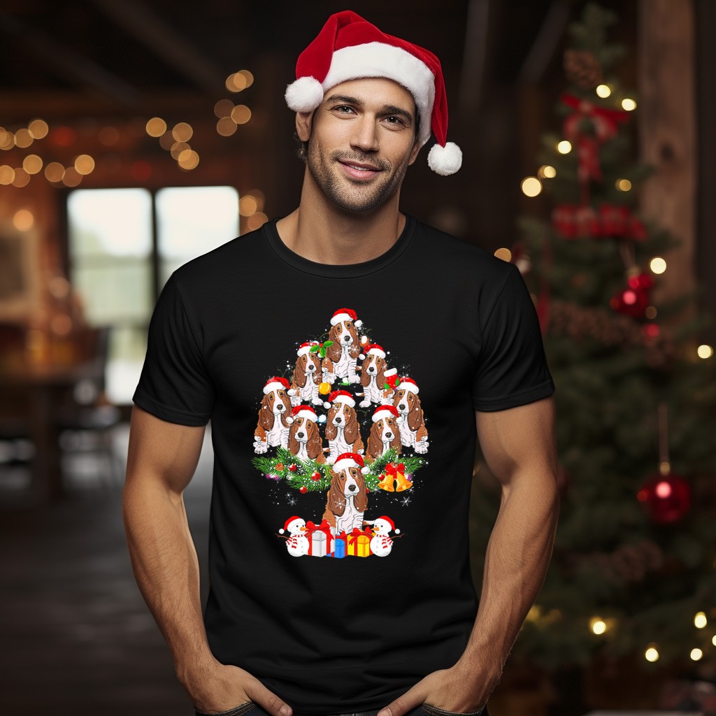 Celebrate the holiday season in style with our Basset Hound Christmas Tree Santa Hats Snowmen T-Shirt! This delightful graphic tee is perfect for dog lovers and festive spirits alike, making it an ideal choice for casual gatherings, themed events, or simply spreading cheer during daily wear. Crafted with a unique fan-made design printed in the USA, this shirt combines comfort and holiday joy, ensuring you stand out in any festive crowd.