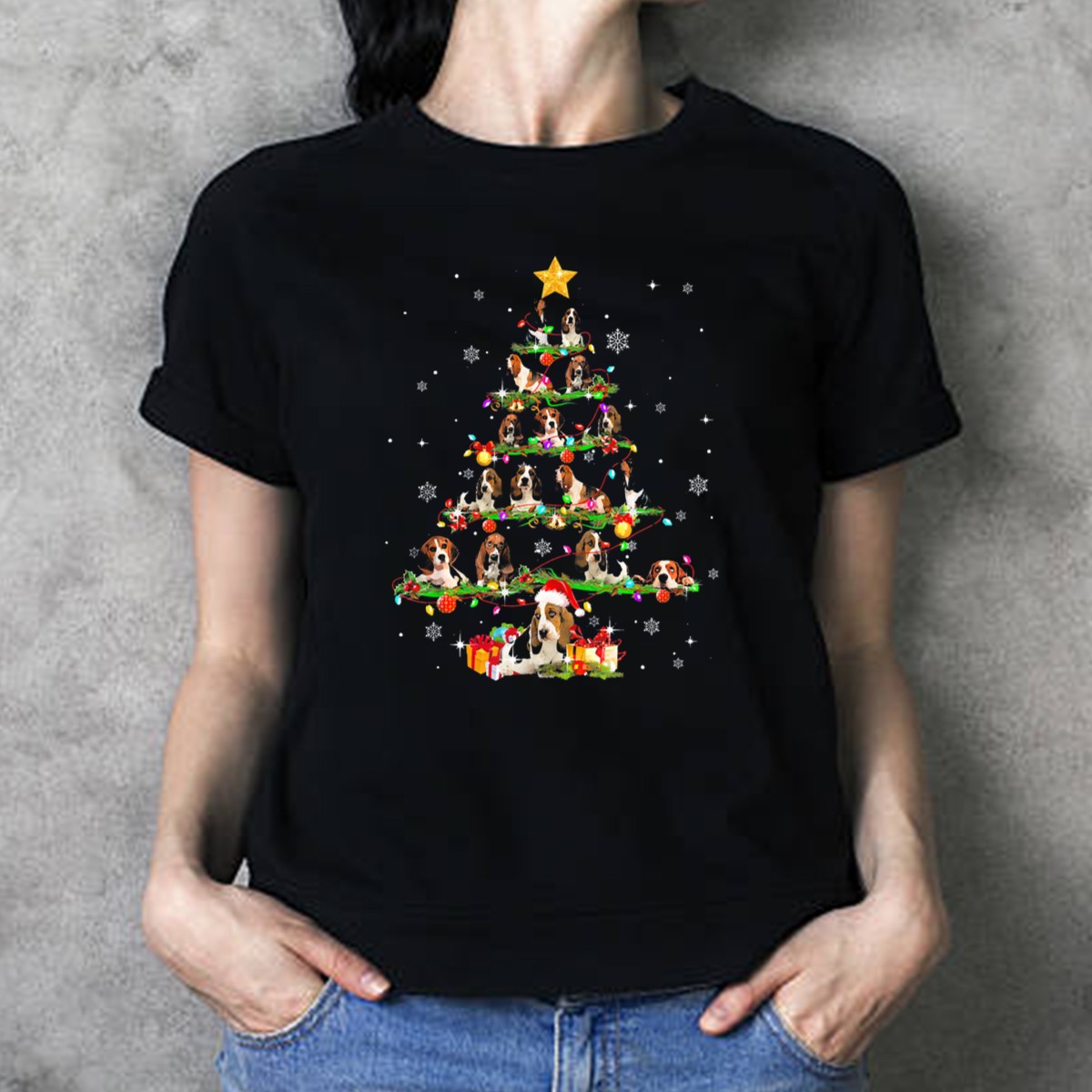 Basset Hound Christmas Tree With Santa Hat And Presents T-Shirt