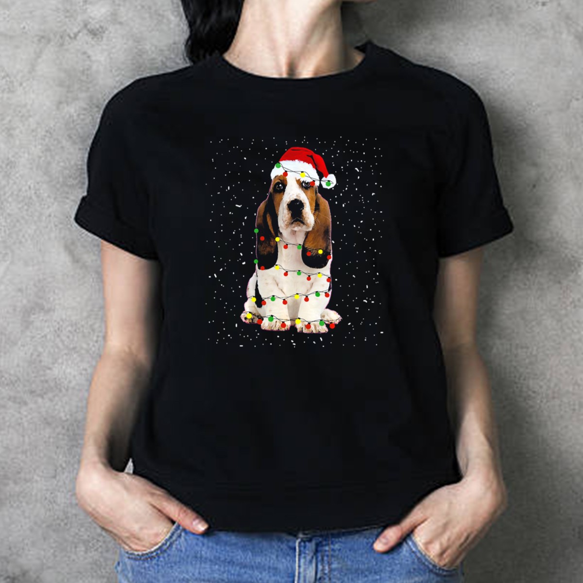 Celebrate the festive season with our charming Basset Hound In Santa Hat With Christmas Lights And Snowflakes T-Shirt! Perfect for dog lovers and holiday enthusiasts alike, this shirt adds a playful touch to your casual wear. Whether you’re attending a holiday party, enjoying a themed event, or simply showcasing your love for Basset Hounds during daily outings, this fan-made design printed in the USA is sure to bring a smile to everyone’s face!