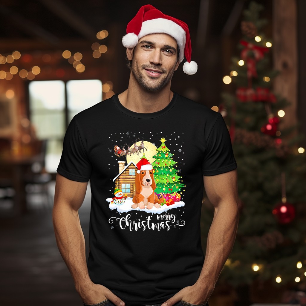 Celebrate the holiday season with our Basset Hound Merry Christmas T-Shirt, perfect for dog lovers and festive gatherings alike! This charming design features an adorable Basset Hound surrounded by classic Christmas elements like a Santa cabin, snowman, presents, and a beautifully decorated tree. Ideal for casual wear, themed events, or simply spreading holiday cheer, this shirt is not just a piece of clothing, but a delightful statement of your love for both Christmas and man’s best friend. Made with care in the USA, it’s a unique addition to your wardrobe that combines comfort with festive flair!