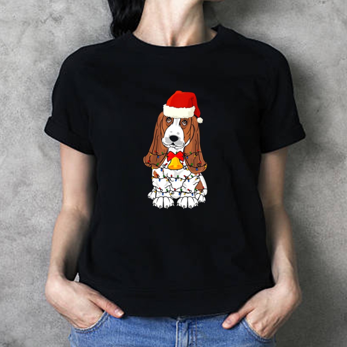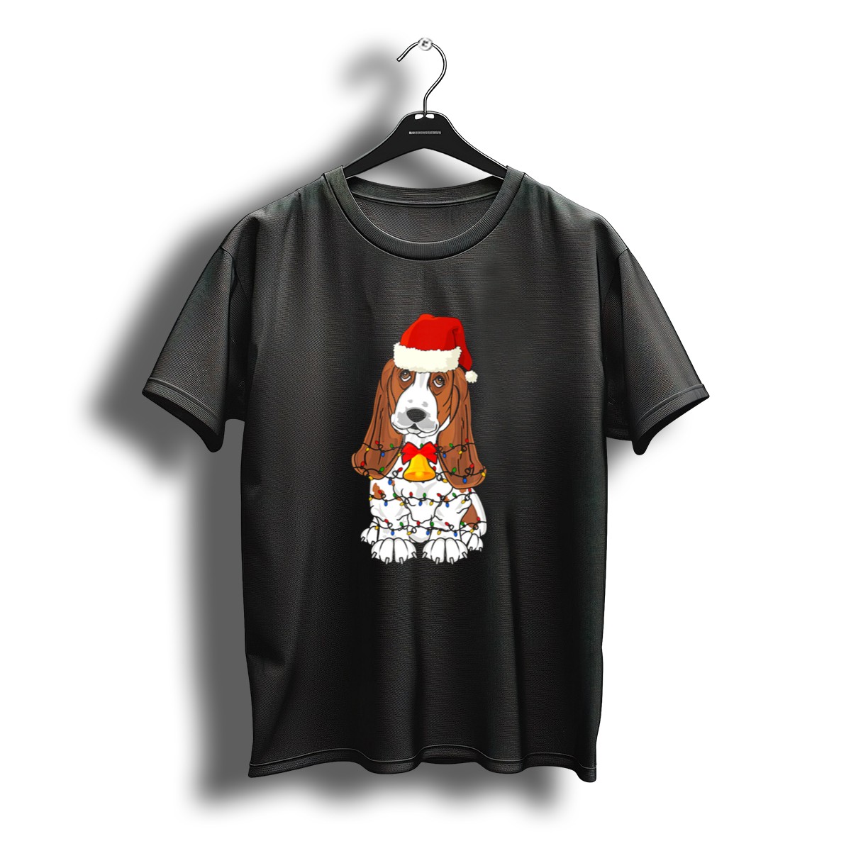 Celebrate the holiday season in style with our Basset Hound Santa Hat T-Shirt, featuring an adorable design of a festive basset hound adorned with Christmas tree lights and a cheerful bell. Perfect for dog lovers and holiday enthusiasts alike, this shirt is ideal for casual outings, themed events, or simply spreading joy during the festive season. Made with love and printed in the USA, it’s a unique addition to your wardrobe that showcases your love for both pets and holiday cheer.