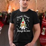 Basset Hound Through The Snow Santa Hat Christmas Tree Snowflakes Paw Prints T Shirt