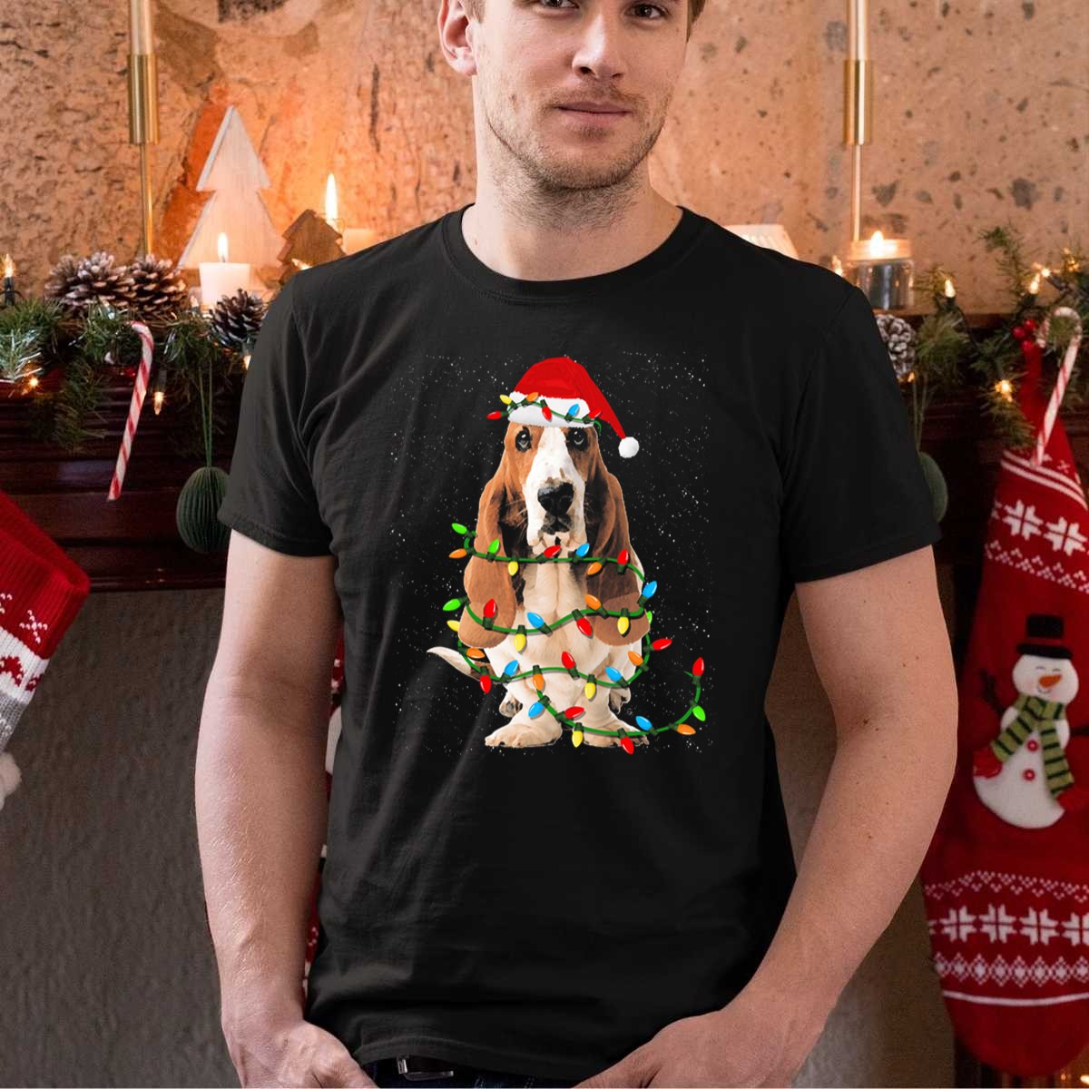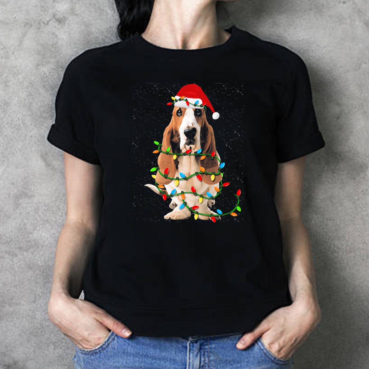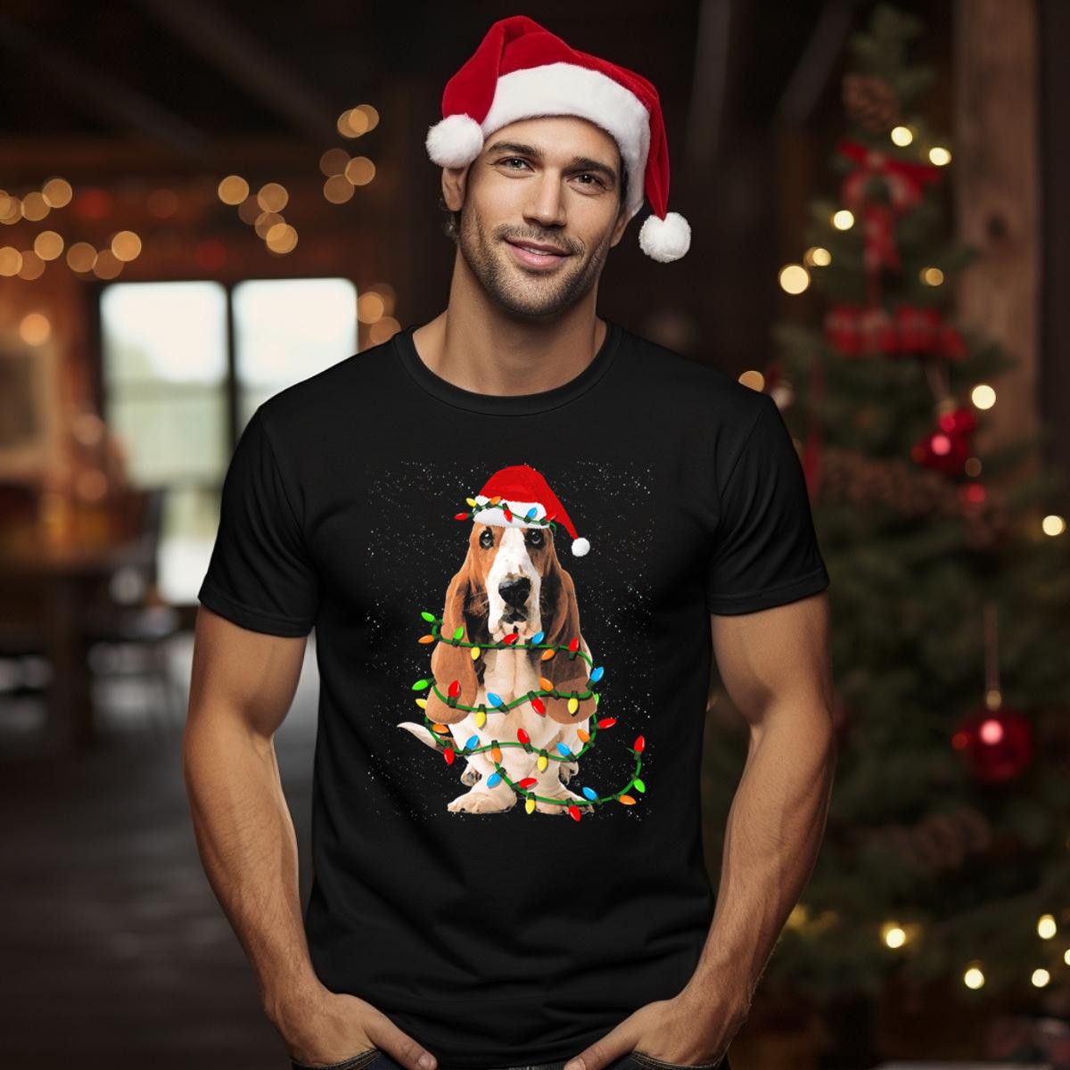 Get ready to spread holiday cheer with our Basset Hound Wrapped In Christmas Lights With Santa Hat T-Shirt! Perfect for dog lovers and festive spirits alike, this delightful tee is ideal for casual gatherings, themed events, or simply adding a touch of whimsy to your daily wear. Made with a fan-made design printed in the USA, this shirt captures the essence of the holiday season while showcasing your love for these adorable pups.