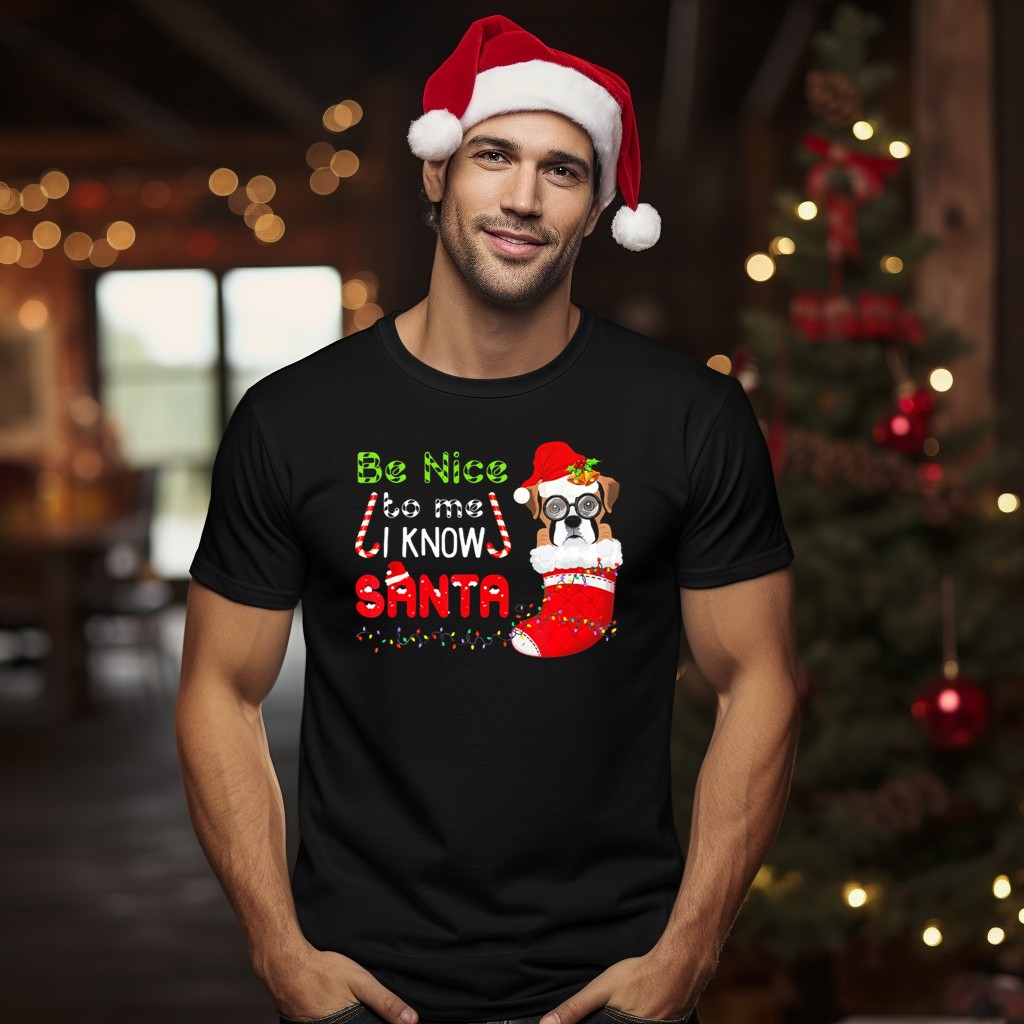 Be the first to review “Be Nice To Me I Know Santa Boxer In Christmas Stocking T-Shirt”
